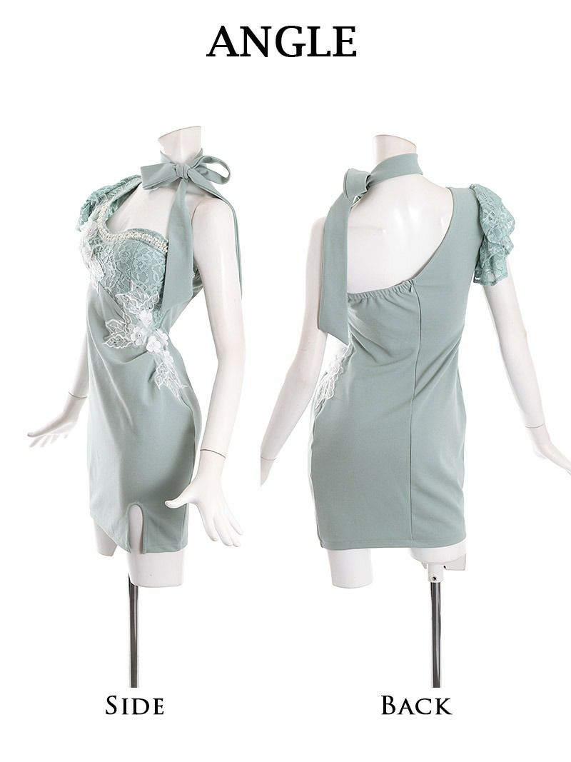 5. ワンショルダーデザイン立体花柄刺繍レースタイトキャバドレス【Ryuyu】(S/M/L)(ピンク/ミント)