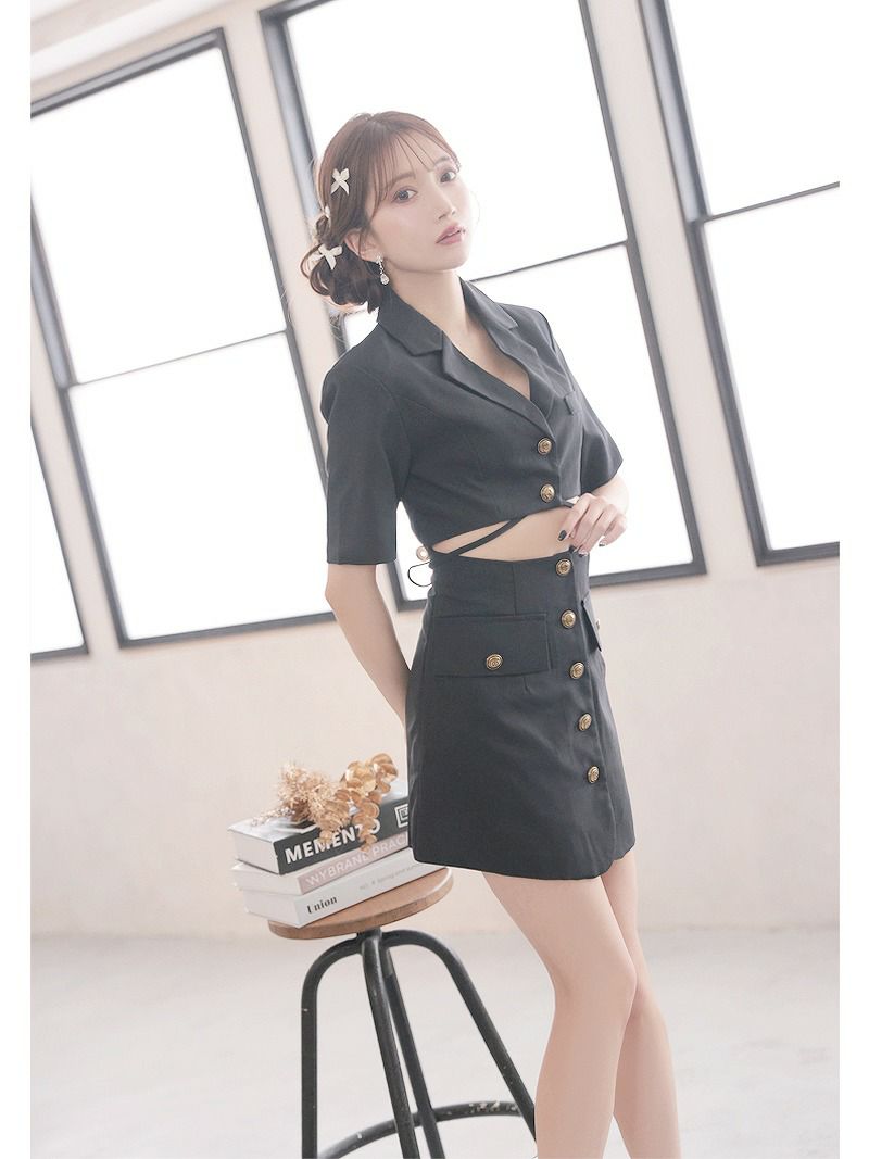 きちんと感をキープしつつ可愛らしいスタイルのセットアップはラウンジやキャバクラ、幅広い夜職コーデに最適。
