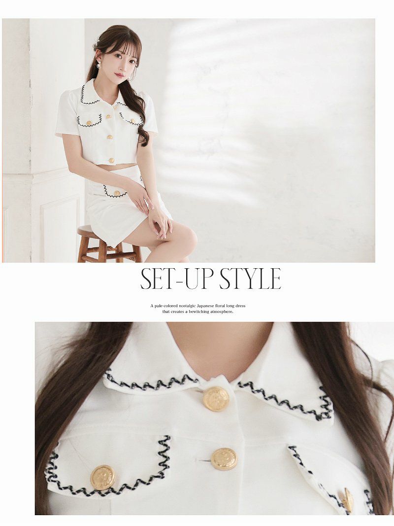 4. 韓国風クラシカル半袖セットアップドレス【Ryuyu】(S/M/L)(ブラック/ホワイト)