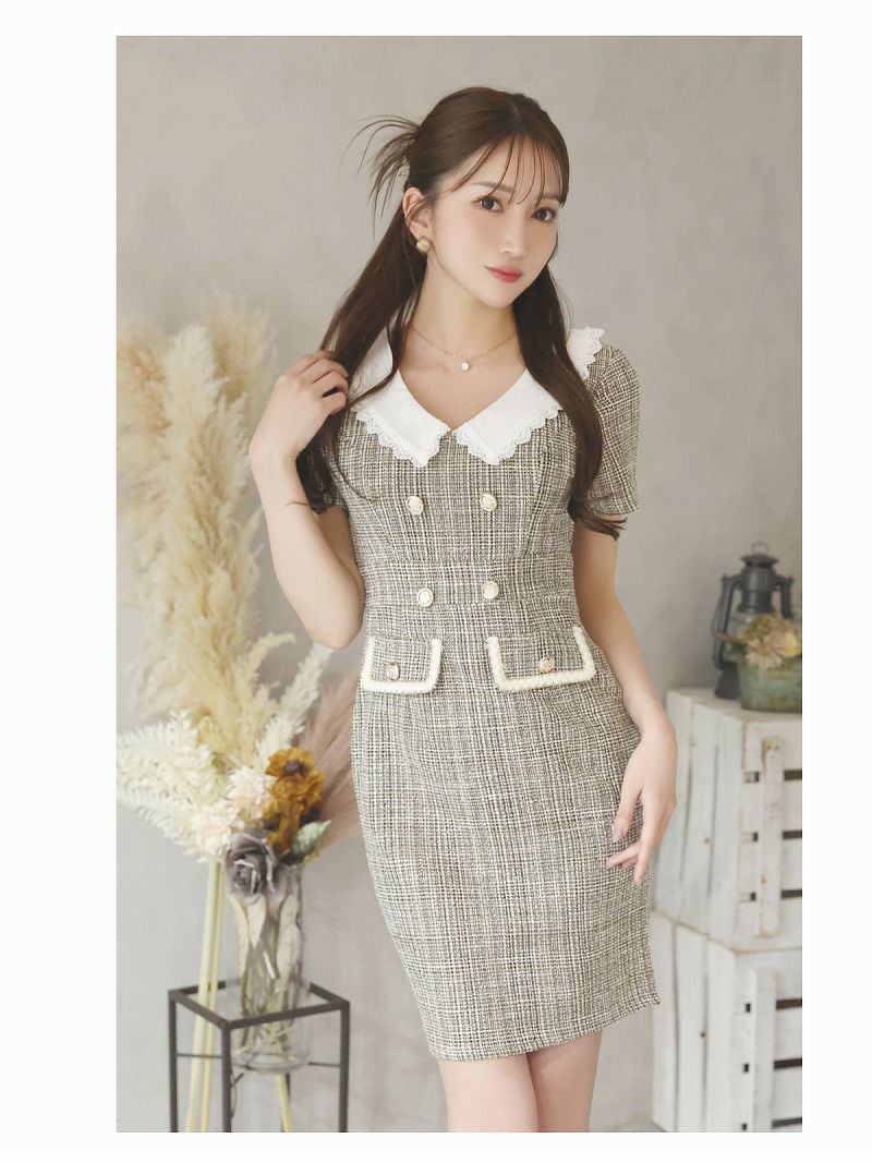 レース襟×チェック柄のコンビがクラシカルで可愛いツイードキャバドレス