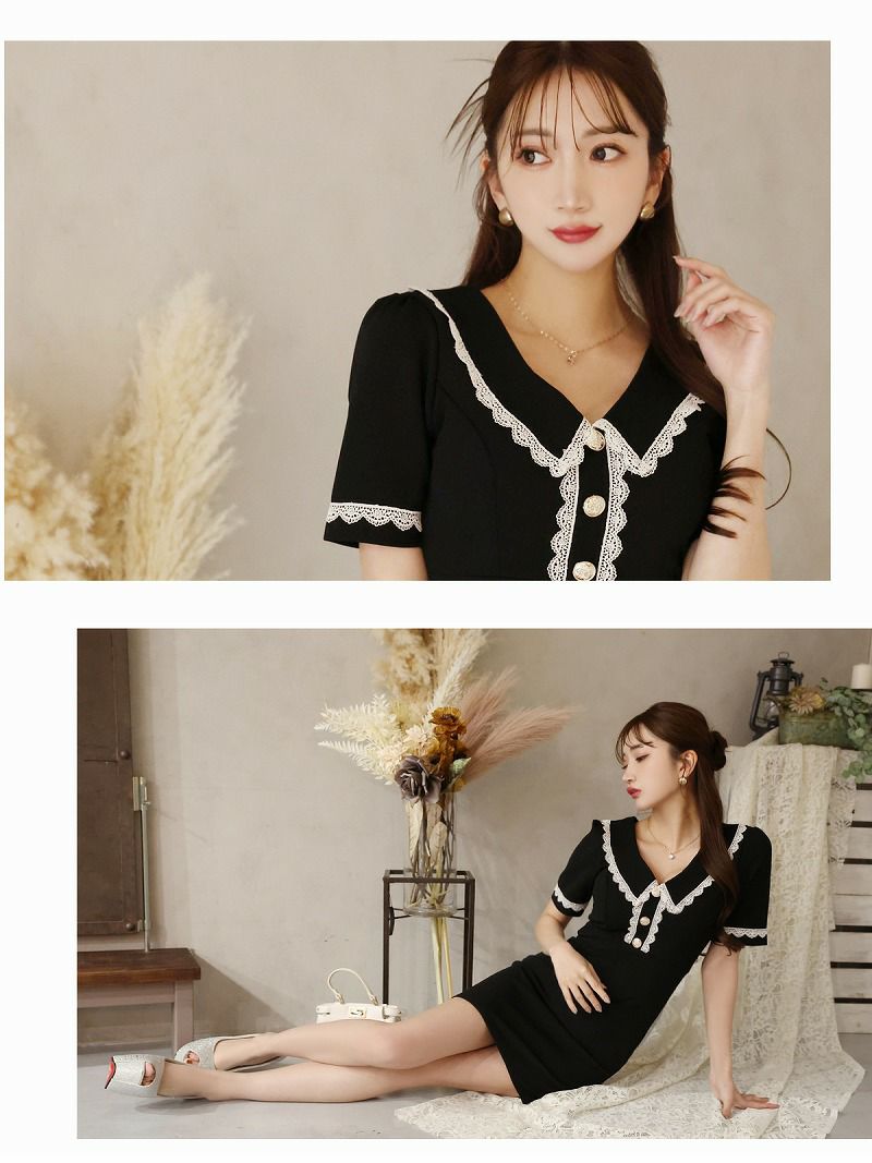 5. レース付き袖が可愛い半袖タイトミニ丈キャバワンピース【Ryuyu】(S/M/L)(ブラック)