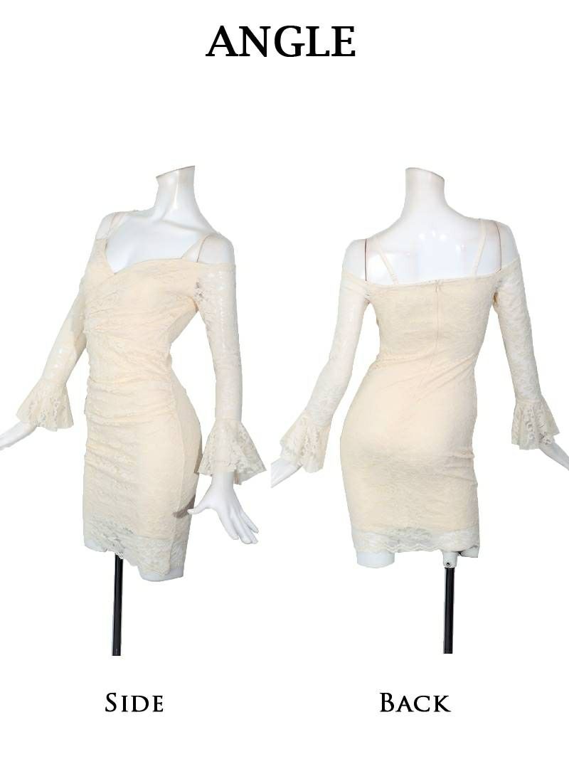 ホワイト総レースオフショルキャバワンピース【RyuyuChick】
