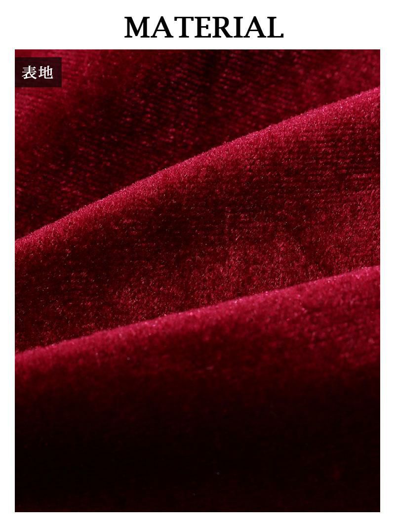 上品ベロアクリスマスドレス パールストラップスリット入りクリスマスロングドレス【Ryuyuchick】(M)(レッド/ブラック)