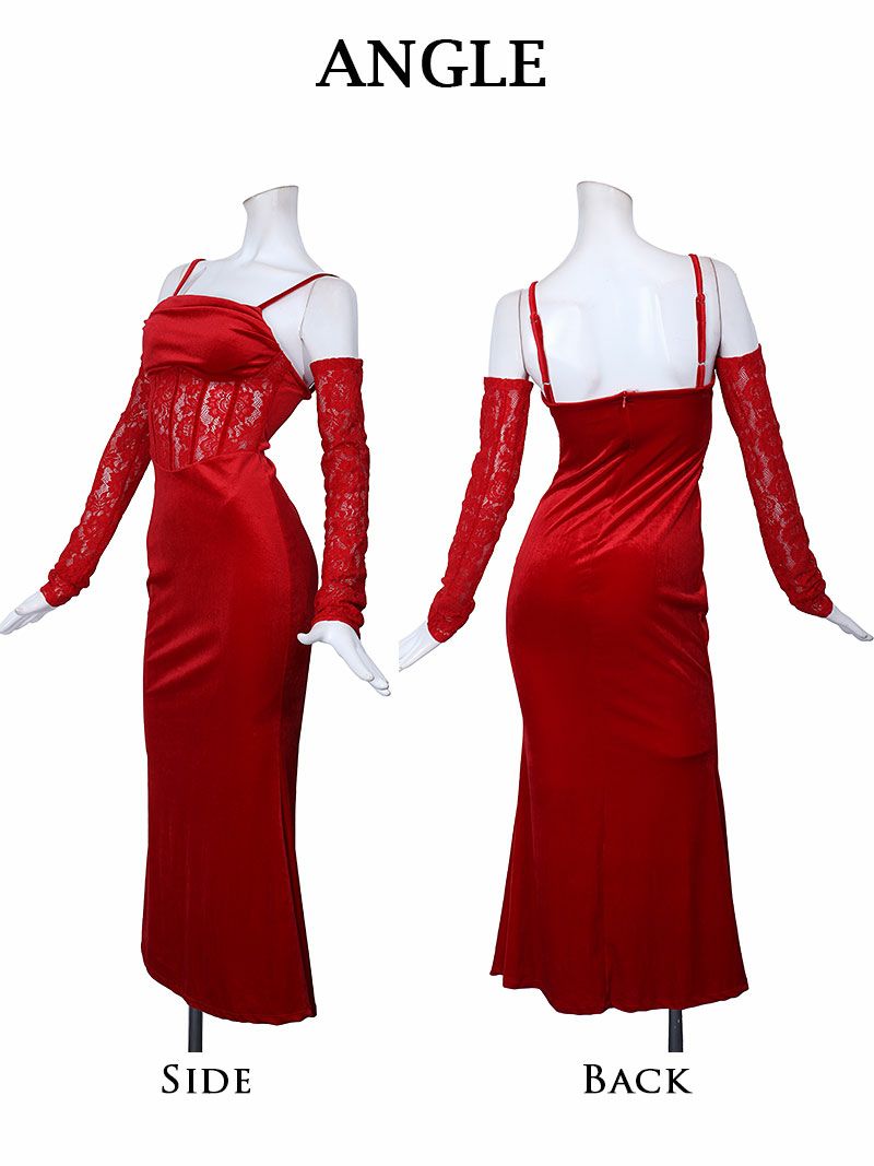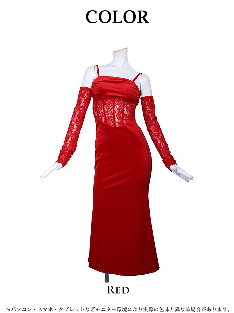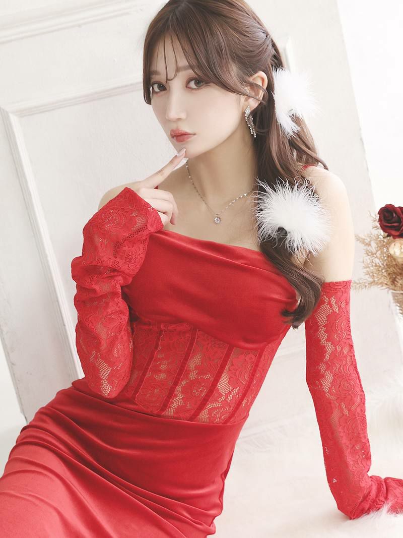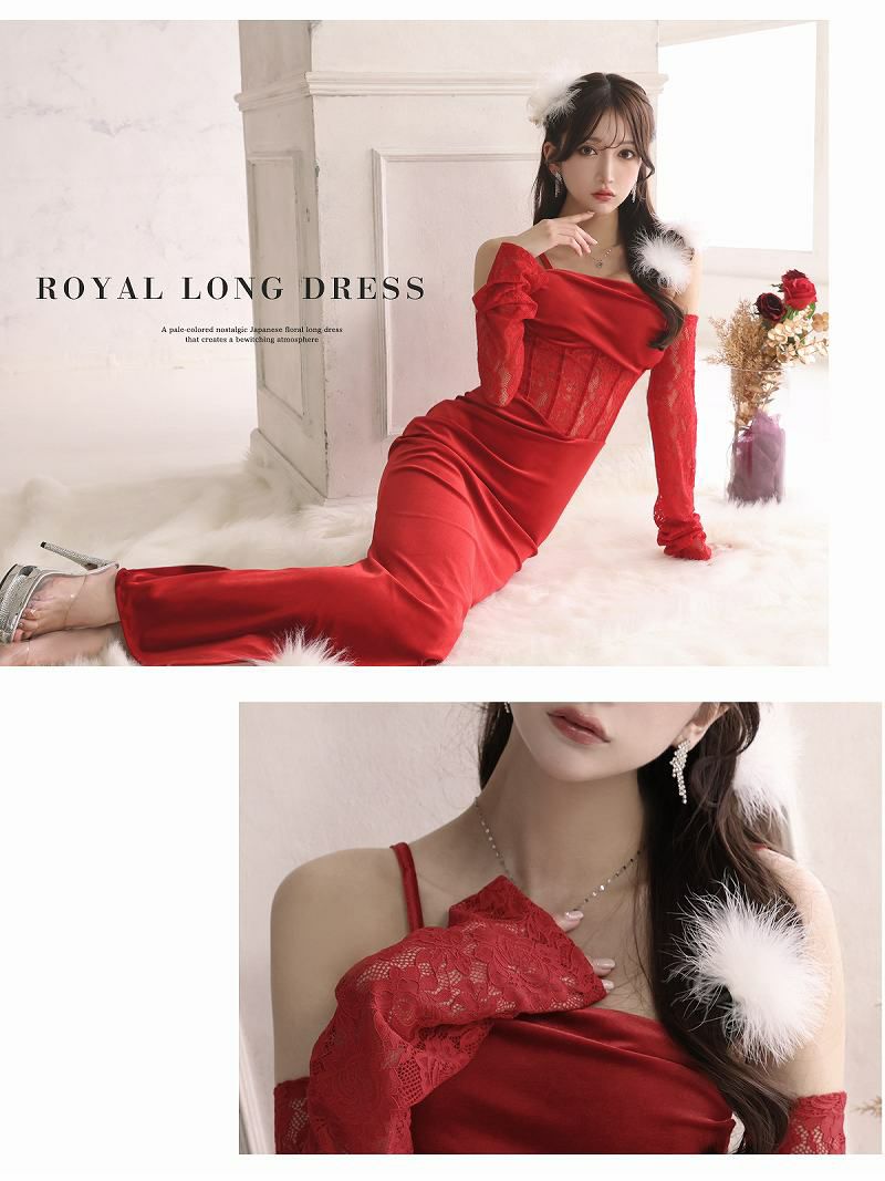 レッドカラーレースシアーオフショルロングドレス【Ryuyuchick】