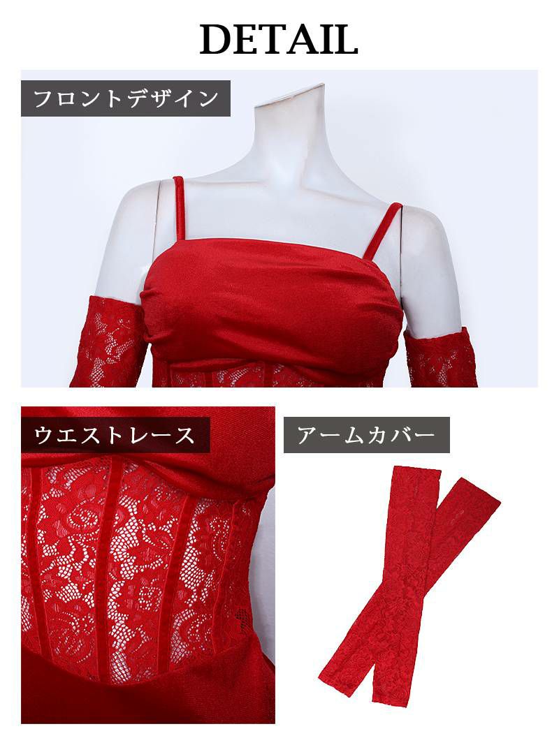 5. スーパーSALE¥3980→¥3333! レッドカラーレースシアーオフショルロングドレス【Ryuyuchick】(M/L)(レッド)