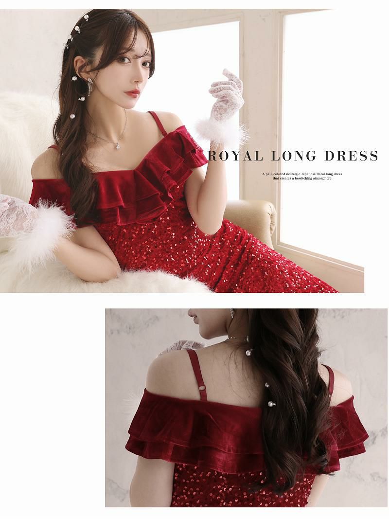 スパンコール艶レッドタイトクリスマスロングドレス【RyuyuChick】