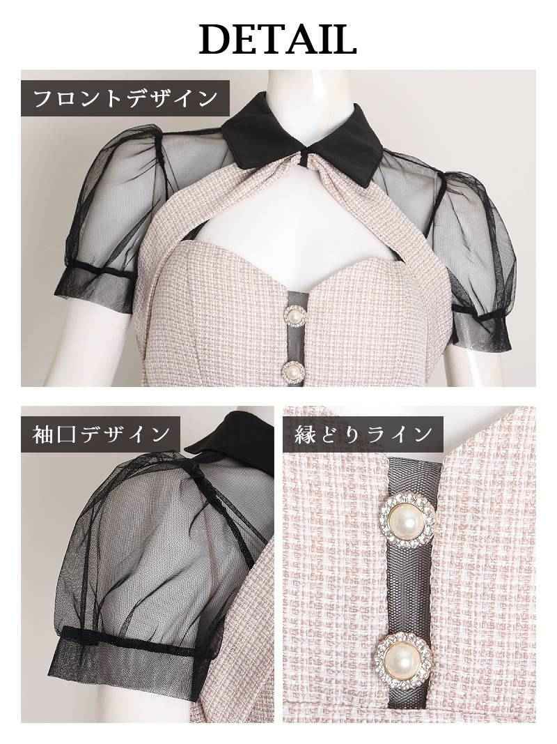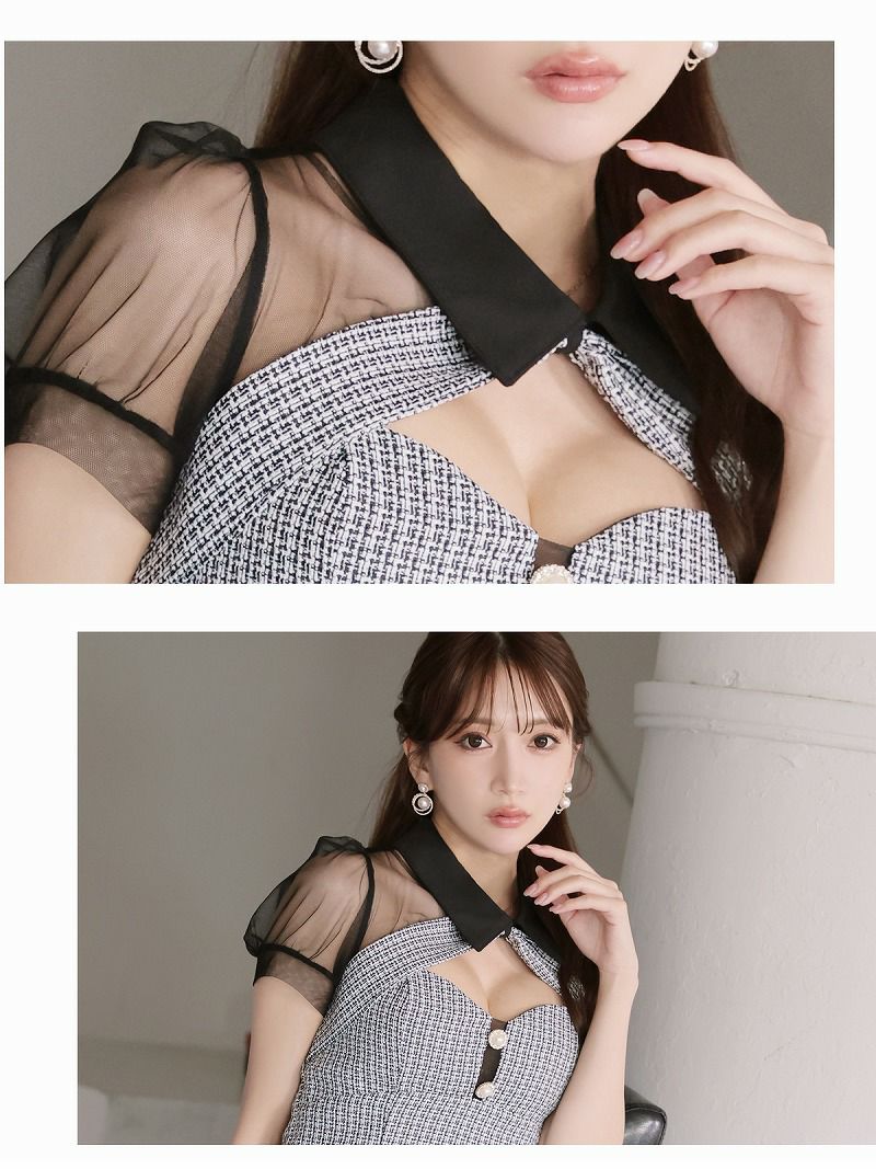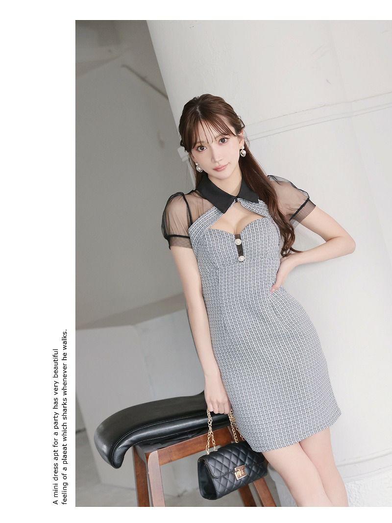 サマーツイード胸盛りシースルータイトミニキャバドレス【Ryuyu】