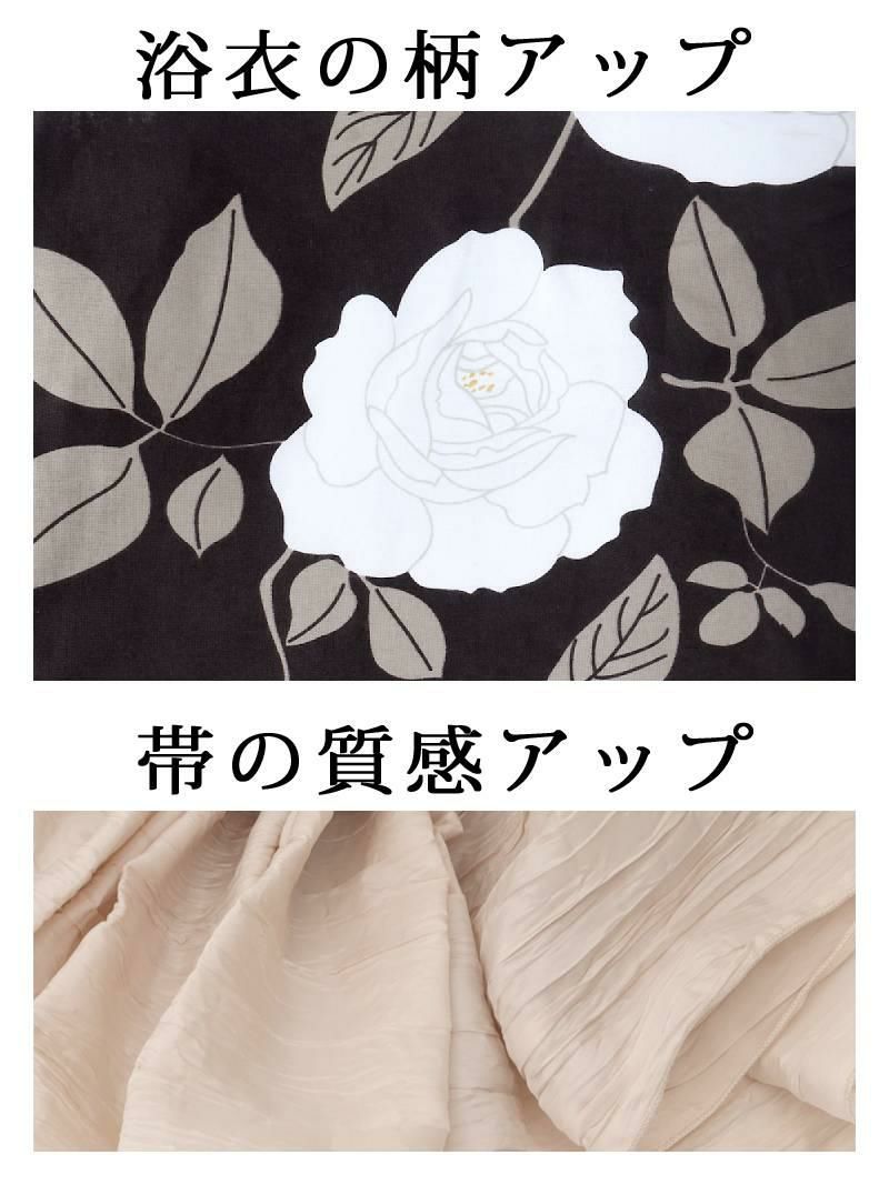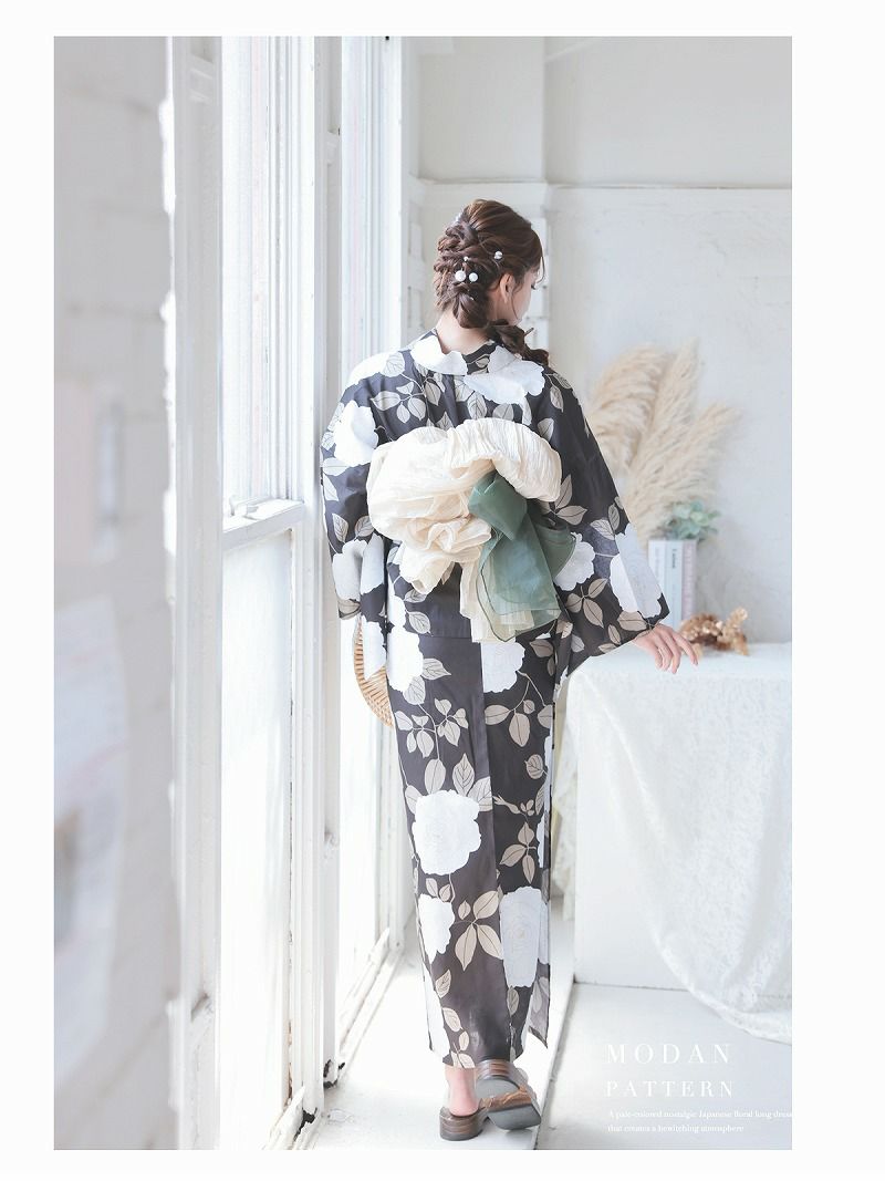 可憐な牡丹柄をあしらい華やかに仕上げた2点セットのレディース浴衣になっています。