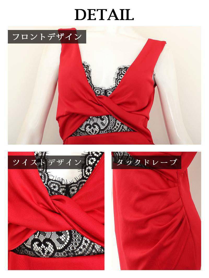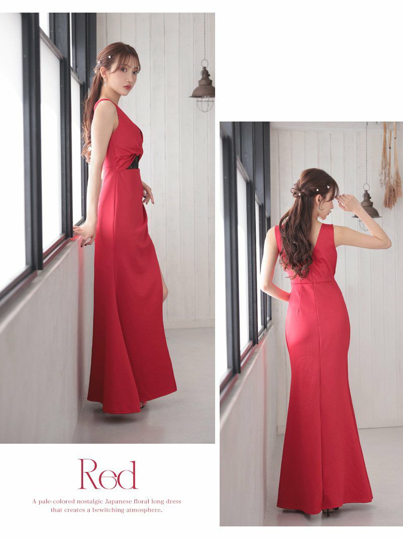 4. レッド×ブラックレース大胆谷間見せセクシーロングドレス【Ryuyu】(S/M/L)(レッド)