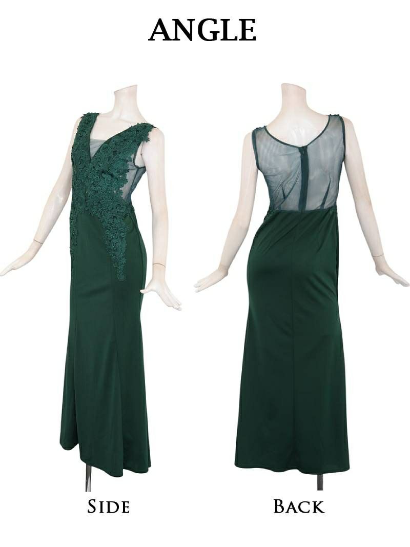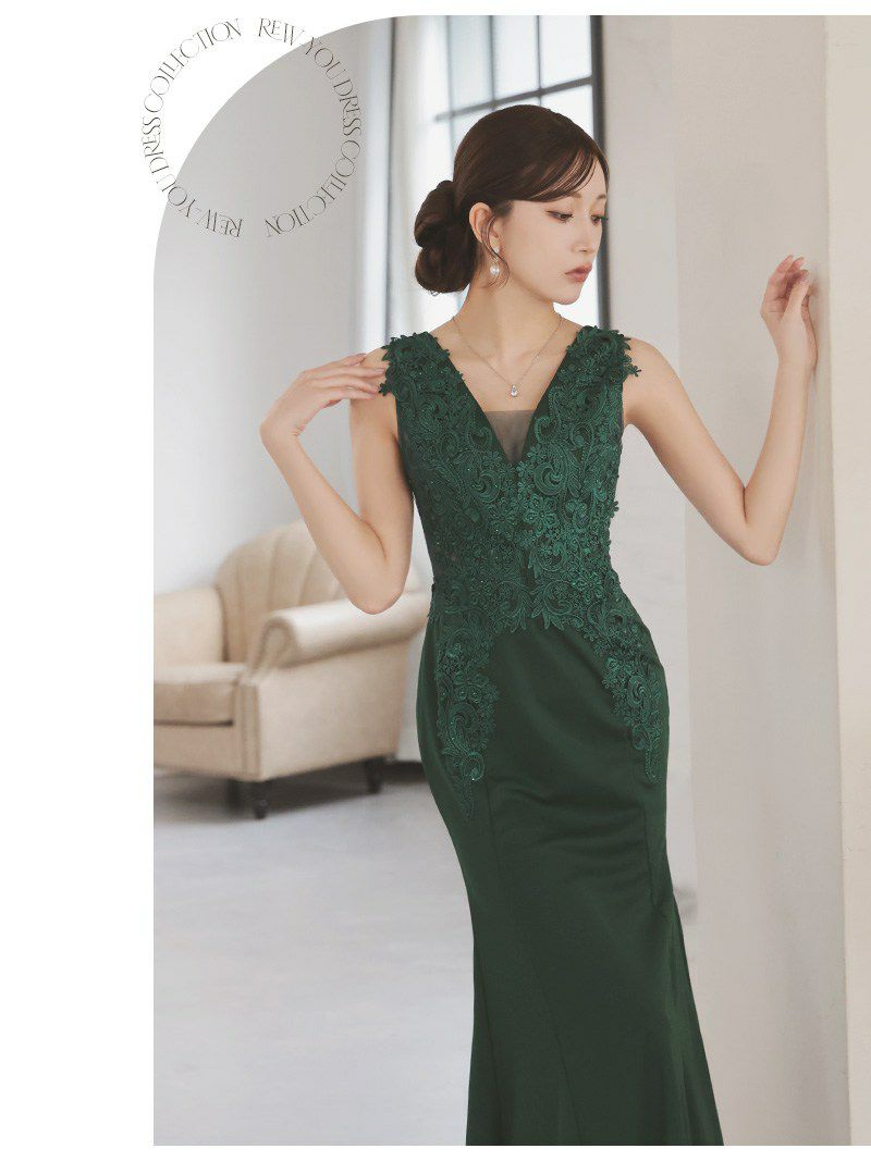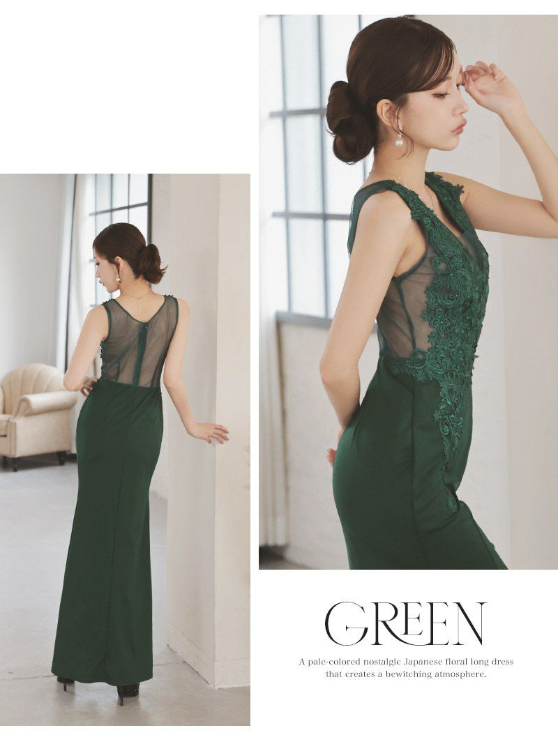 洗練された刺繍レースが際立つ、深緑のシアータイトドレスで視線を釘付けに。 立体刺繍シースルーメッシュエレガントスレンダーロングドレス【Ryuyu】(S/M/L/XL(2L))(グリーン/ブラック/オフホワイト/ワイン)