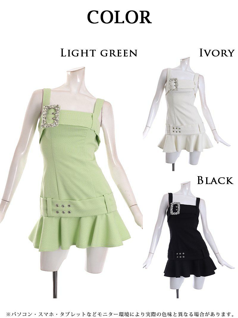 上品さと可愛さの両立♪ 【PURESS/ピュアレス】バックルパールビジューツイードミニドレス(XS/S/M)(アイボリー/ブラック/ライトグリーン)