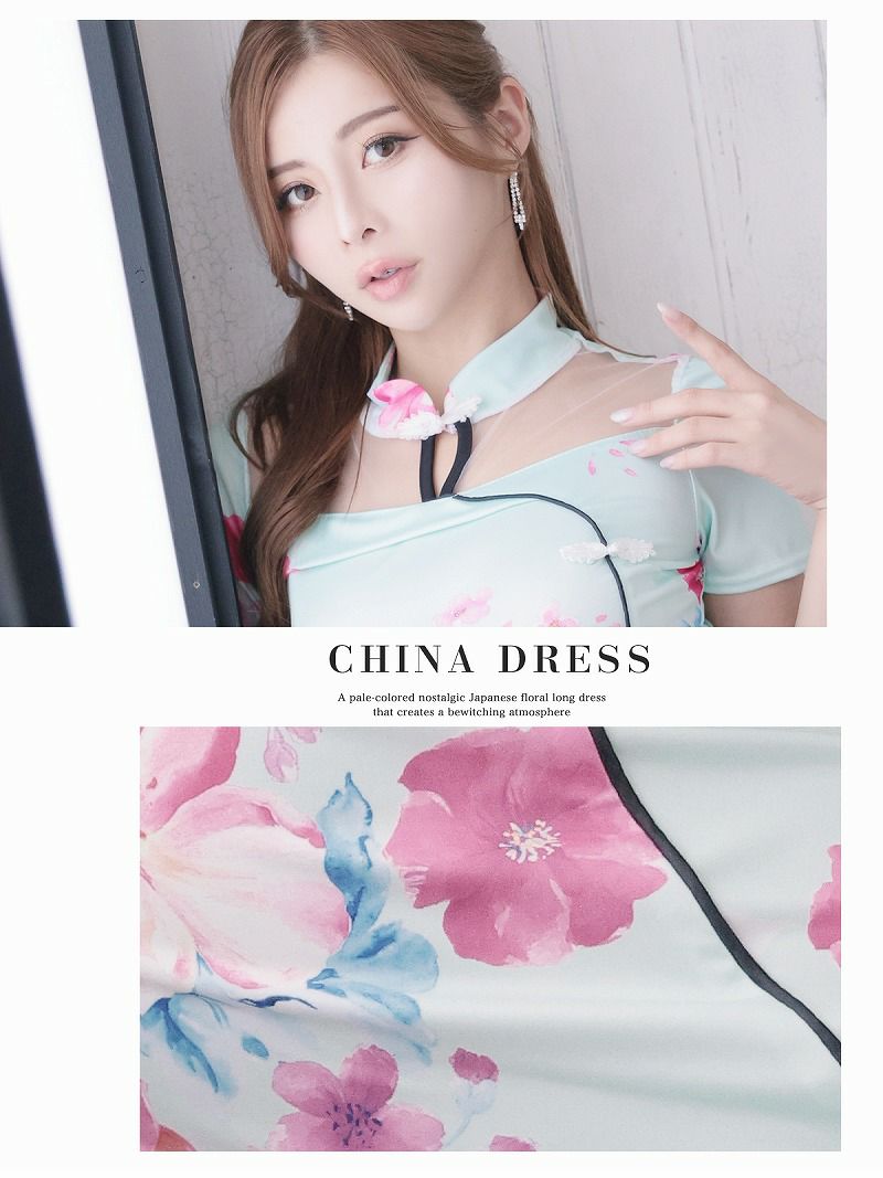 チャイナ風花柄袖付きキャバドレス【RyuyuChick】