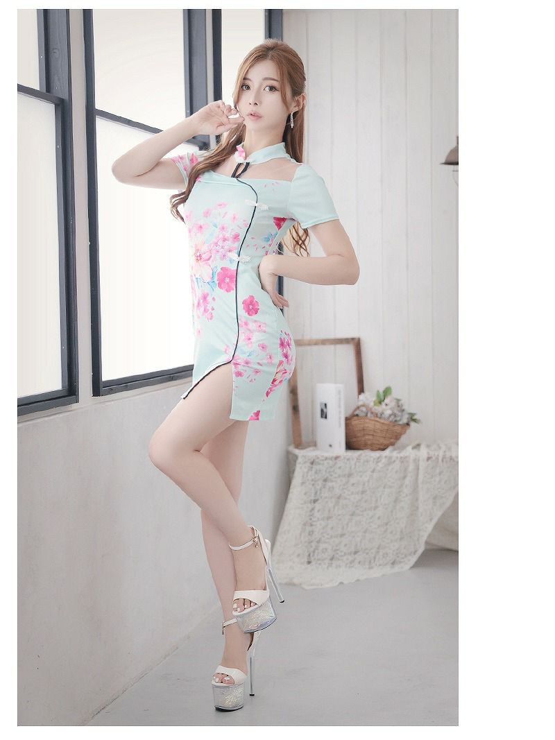 可愛いけどsexyなチャイナドレス スーパーSALE¥4380→¥1333! チャイナ風花柄袖付きキャバドレス【RyuyuChick】(S/M)(ホワイト/ブラック/ミント)