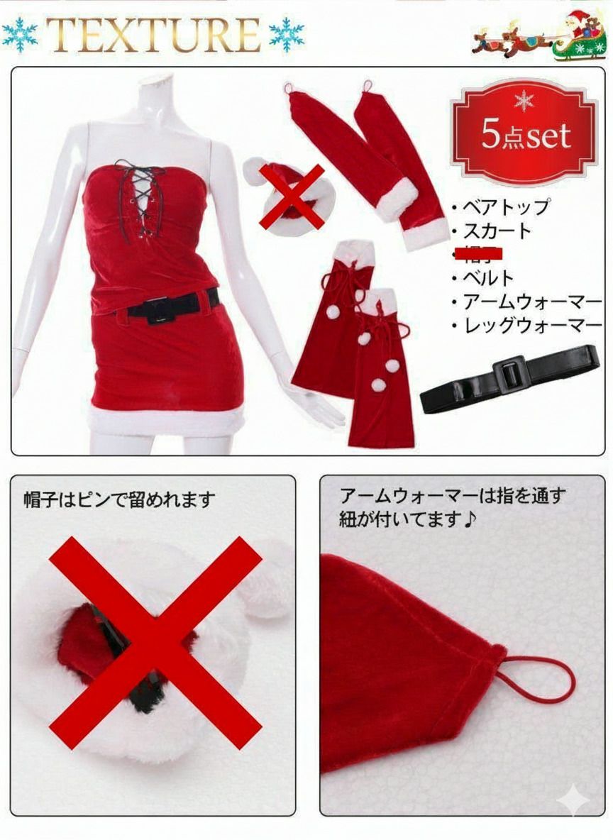 訳ありお得!cuteサンタさん 【訳ありアウトレット】胸元シューアップストレッチサンタコスチューム衣装5点セット【Ryuyu】(M/L)(レッド)