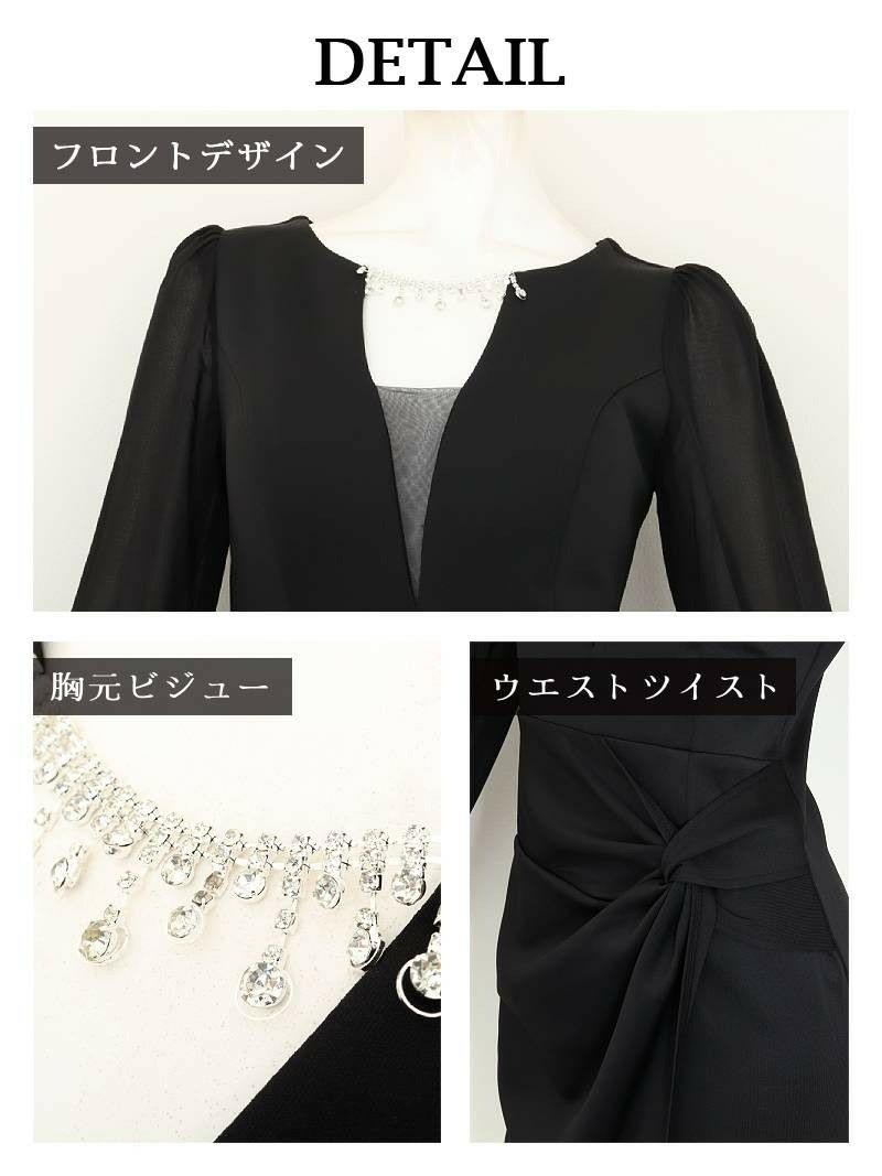 高見え!セクシー!イイ女感をまとえる! 先行予約割¥4680→¥4446!※一部予約販売※ビジューシフォンアシメデザイン長袖ミニドレス りせり 着用 キャバドレス【RyuyuChick】(S/M/L/XL(2L))(ホワイト/ブラック)