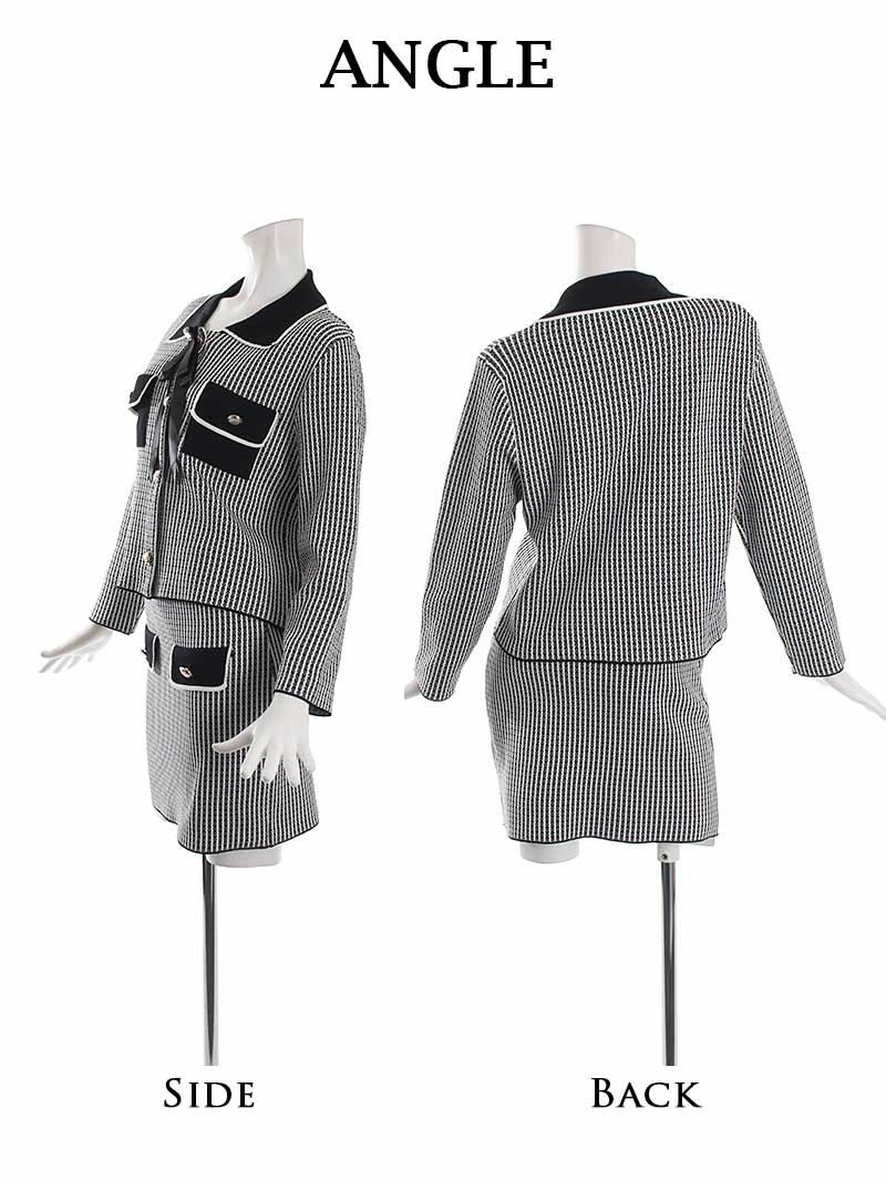 千鳥柄風デザインで上品な印象に 令嬢風ニットキャバスーツ 千鳥柄フォーマルスーツ【Ryuyu】(M)(ブラック)
