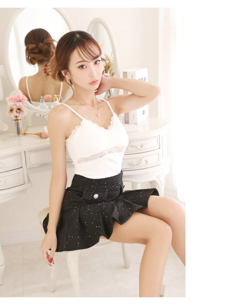 見えても可愛い♪ パッド付きシースルーレースキャミソール【Ryuyu】(フリーサイズ)(ブラック/ホワイト)