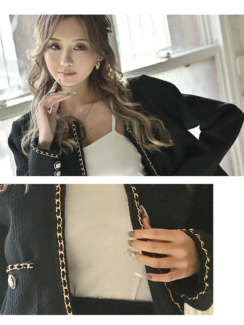 訳ありお手軽アウター 【訳ありアウトレット】大人セクシーなノーカラーキャバジャケット【Ryuyu】(S/M/L)(ブラック/ホワイト)
