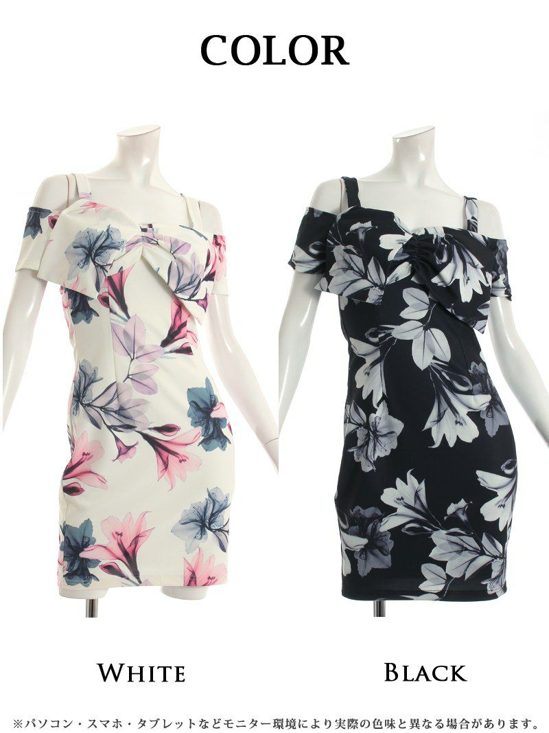 訳あり薄手のキャバスーツ 【訳ありアウトレット】花柄ワンピースキャバスーツ【Ryuyu】(S/M/L/XL)(ブラック/ホワイト)