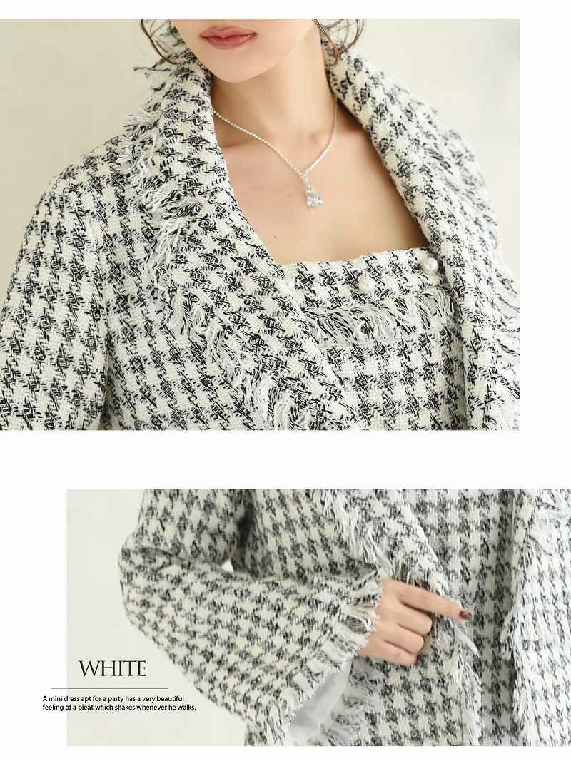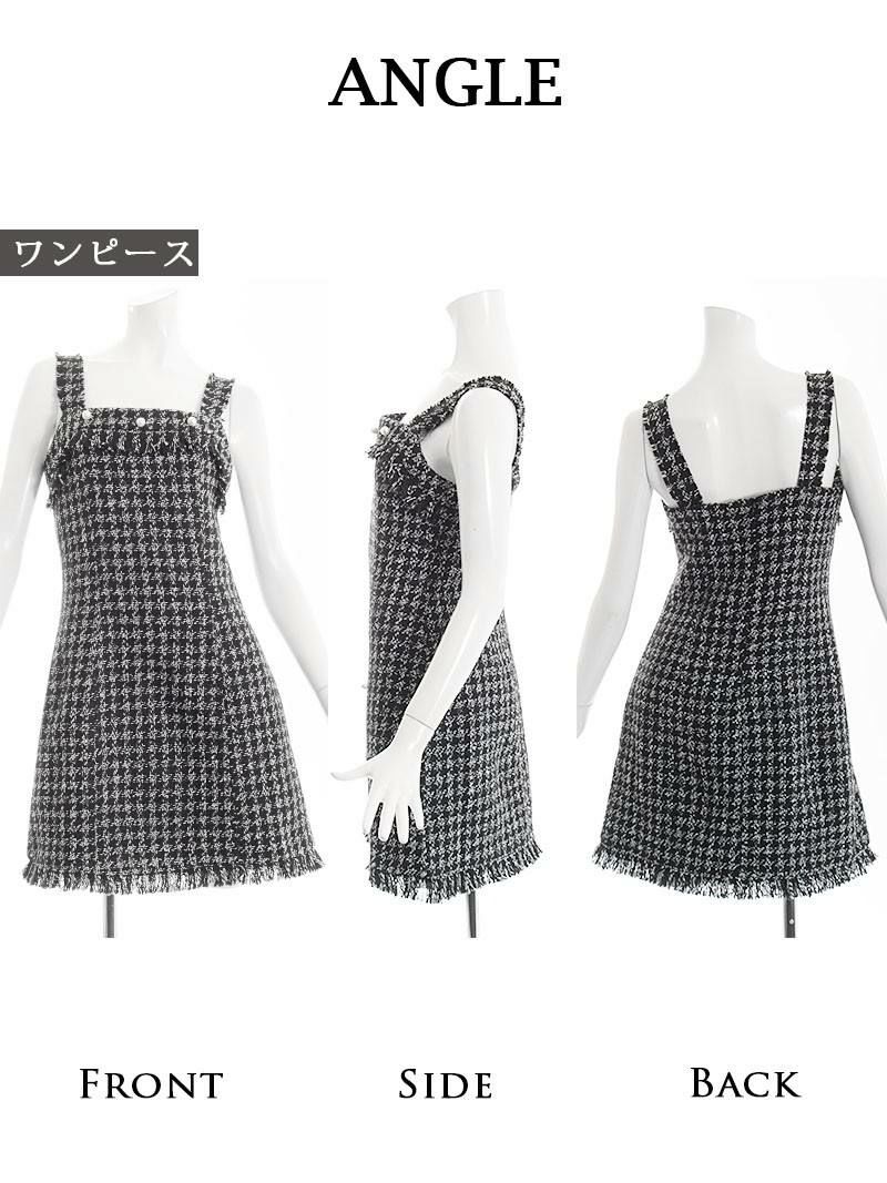 訳ありフォーマルツイード 【訳ありアウトレット】ツイード膝丈チェック千鳥ワンピースキャバスーツ【Belsia】(S/M/L)(ブラック/ホワイト)
