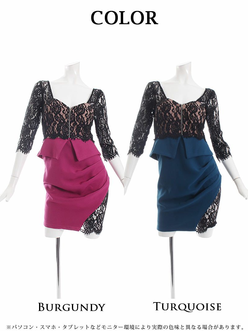 訳あり大人フォーマル 【訳ありアウトレット】ペプラムスリット入りバイカラーミニ丈キャバスーツ【Ryuyu】(S/M/L/XL)(ブラック/ホワイト/ワイン/マスタード/ブルー/ベージュ)