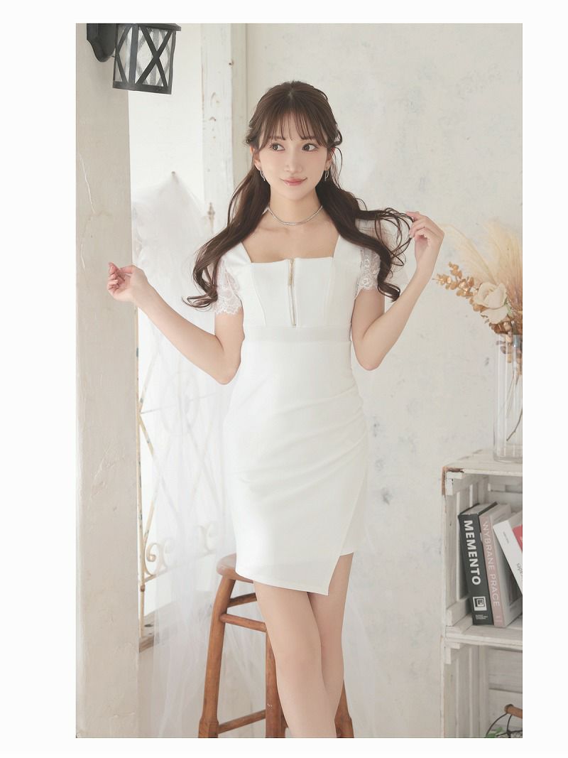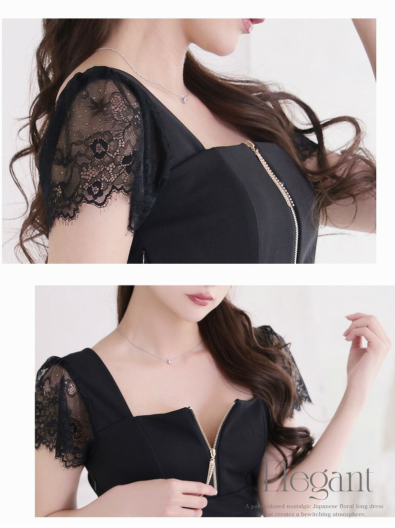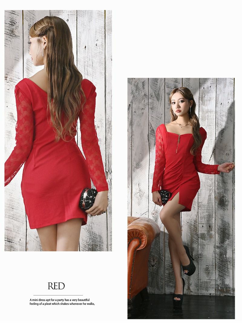 高見え確実!星柄レースで映える! 先行予約割¥3980→¥3781!※一部予約販売※胸ジップレース袖セクシーキャバドレス あいみん りおん 着用 ミニドレス【RyuyuChick】(S/M/L/XL(2L)/XXL(3L))(ブラック/ブルー/レッド)