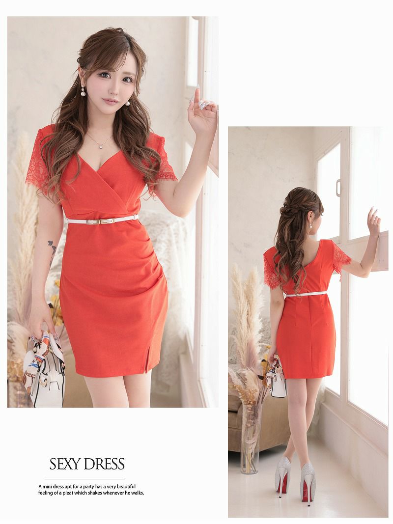 体型カバーも色気も叶える♪ 先行予約割¥2990→¥2841!※一部予約販売※カシュクールメッシュ袖タイトミニドレス りせり 着用 ミニドレス【RyuyuChick】(S/M/L/XL(2L)/XXL(3L))(ブラック/ホワイト/オレンジ)