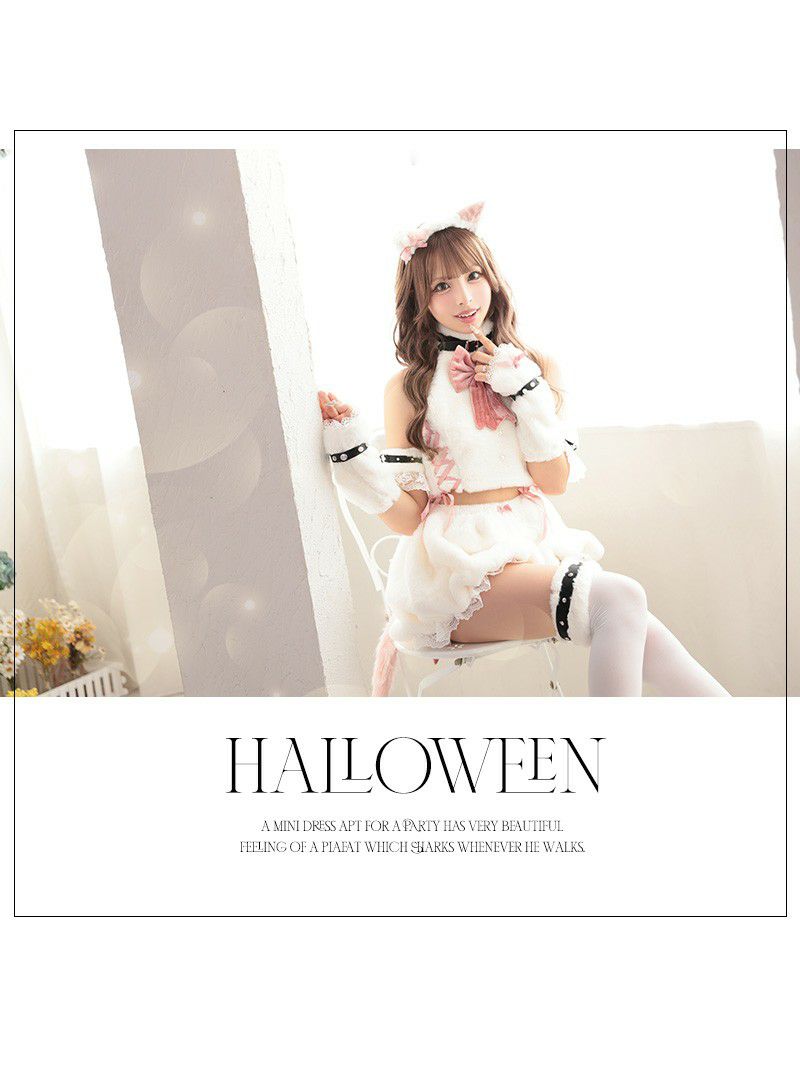 かわいすぎる私に大変身! SNS映えふわふわギャルキャットコスプレ あいさ 着用 ハロウィンコスチューム12点セット【Ryuyu】(フリーサイズ)(ブルー/ピンク)