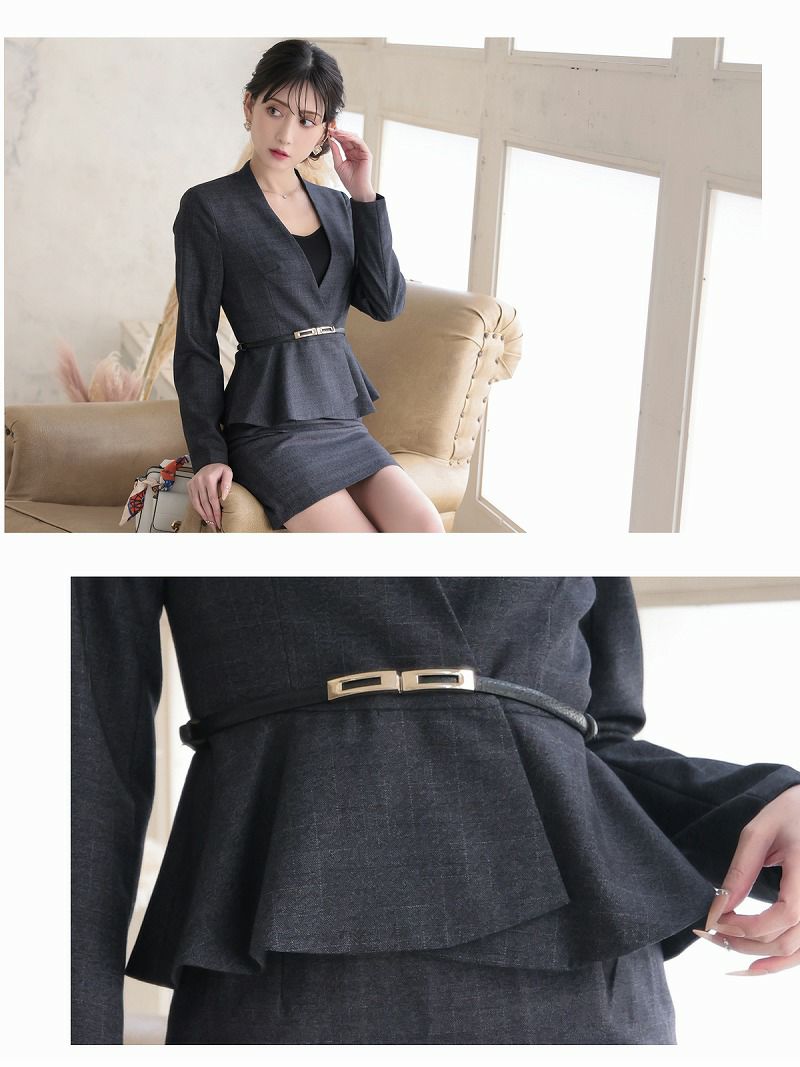上質なノーカラーと計算されたペプラムが、都会的で凛とした美しさを演出する。 先行予約割¥13800→¥13109!※一部予約販売※上質ノーカラージャケットペプラムセットアップタイトミニ丈フォーマルドレス 加賀美早紀 着用 キャバドレス【BelsiaLUX】(S/M/L/XL(2L))(パープル/グレー)