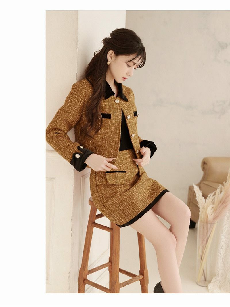 5. 先行予約割¥9900→¥9405!※一部予約販売※襟付き金ボタンツイードジャケット×タイトミニスカートセットアップ フォーマルキャバドレス 加賀美早紀 着用キャバスーツ【Belsia】(S/M/L/XL(2L))(ブラック/レッド/ベージュ)