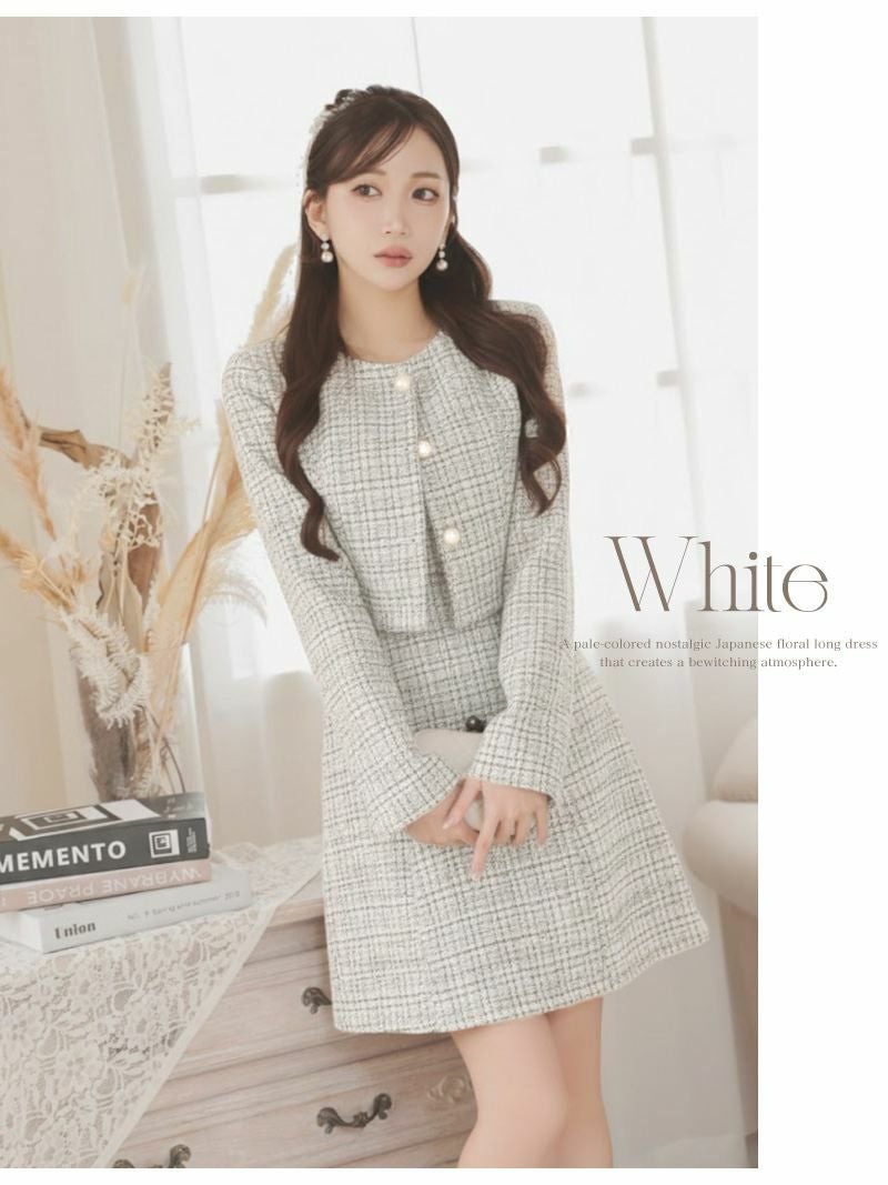 上品なニットツイード素材を使用した、大人可愛いチェック柄のワンピーススーツです!