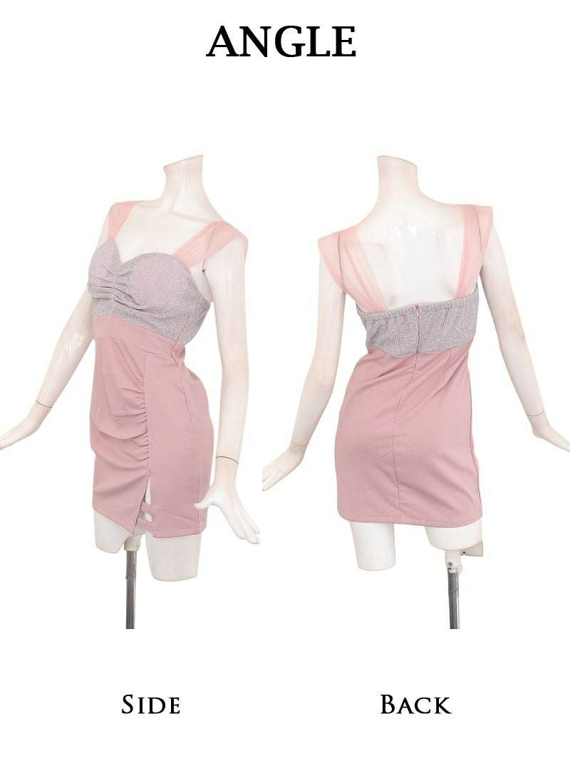 シルバーラメの輝きとメッシュスリーブが色っぽいパステルカラーのタイトミニドレス 【Ryuyu】