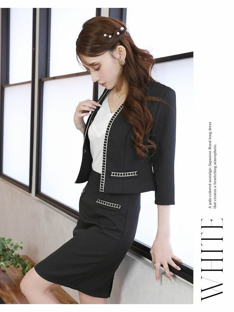 サイズ展開豊富なレディーススーツが登場! 袖付きタイトスカートノーカラーキャバスーツ 加賀美早紀 着用 レディーススーツ【Belsia】(S/M/L/XL(2L)/XXL(3L)/XXXL(4L))(ブラック/ホワイト)