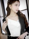金ボタンのアクセントとスリットが目を惹く、品格溢れるツイードセットアップスーツ。 ゴールドボタンノーカラーツイードセットアップスーツ 加賀美早紀 着用 キャバスーツ【Belsia】(S/M/L/XL(2L))(ブラック/オフホワイト)