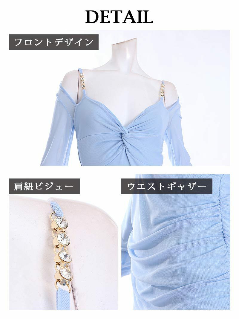 4. 先行予約割¥3480→¥3305!※一部予約販売※オフショル袖付きミニ丈キャバドレス【RyuyuChick】(M/L)(ブラック/ホワイト/ブルー)