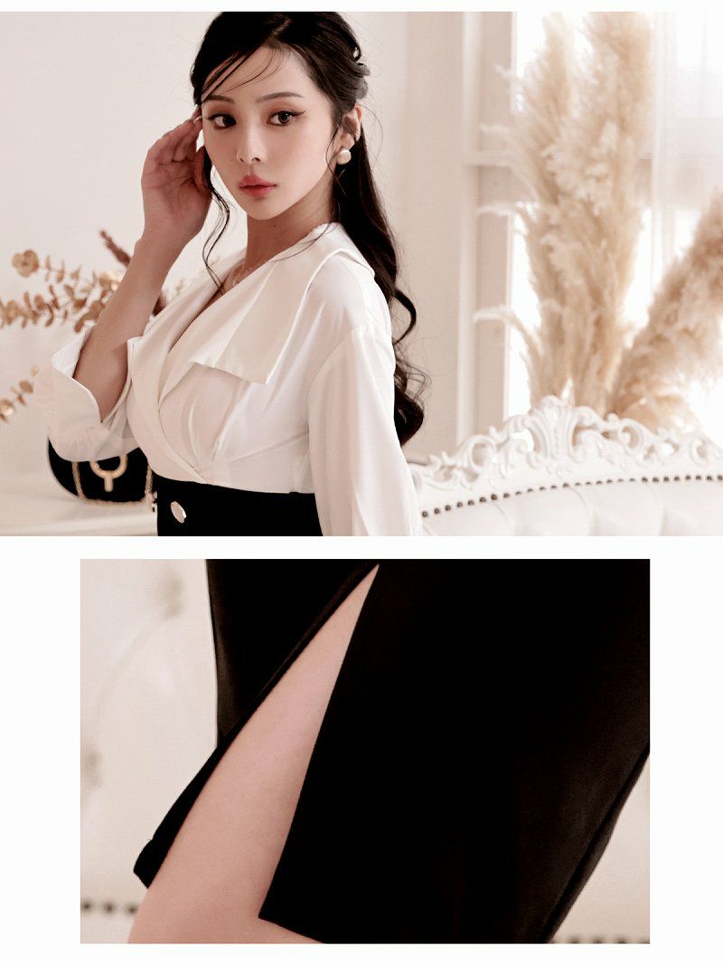 袖付きのブラウジングワンピースで大人きちんと感で知的LADYな印象のキャバワンピース。