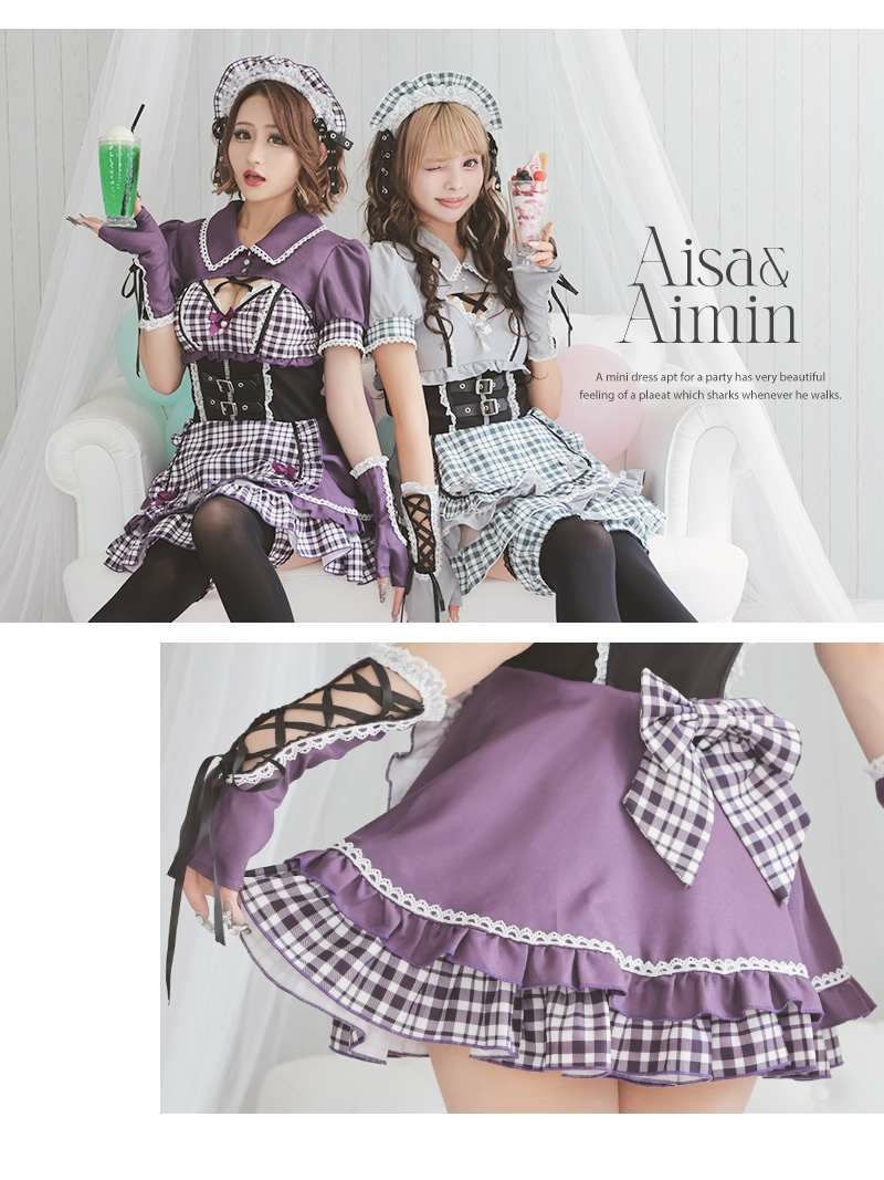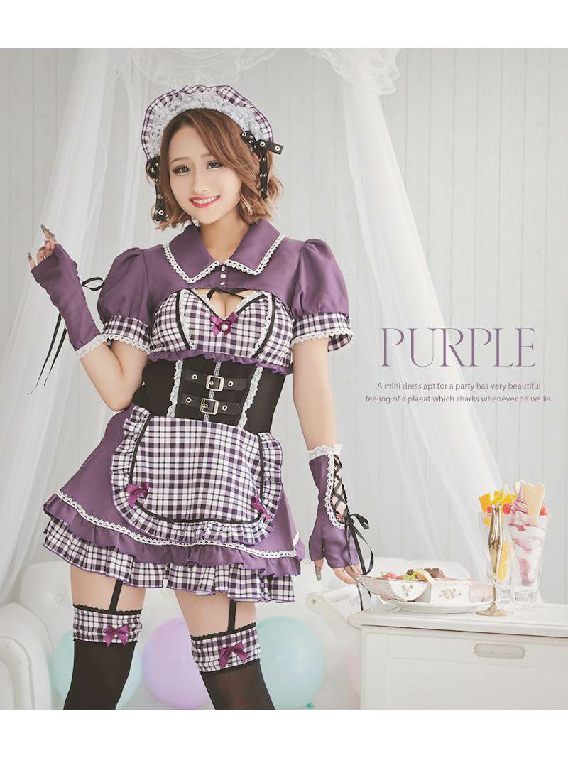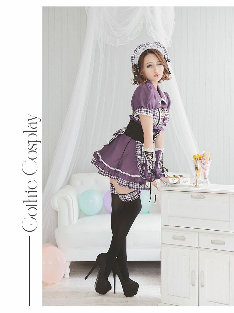 コスプレ ゴシックチェック柄メイドギャルコスプレ あいさ あいみん 着用 レディースコスプレ7点セット【Ryuyu】