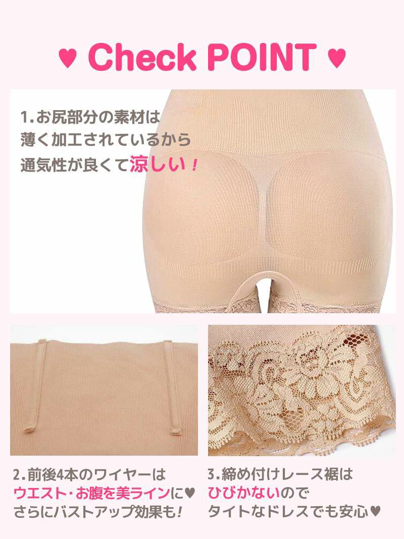 通気性が良いので涼しいのもポイントの補正下着はハイウエストタイプだからぽっこりお腹もカバー!