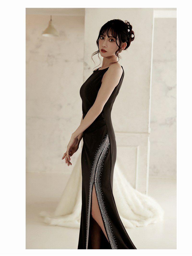 3. 深スリット入りタイトマーメイドロングドレス 加賀美早紀 着用キャバドレス【Belsia】(S/M/L)(レッド/ブラック/ブルー)