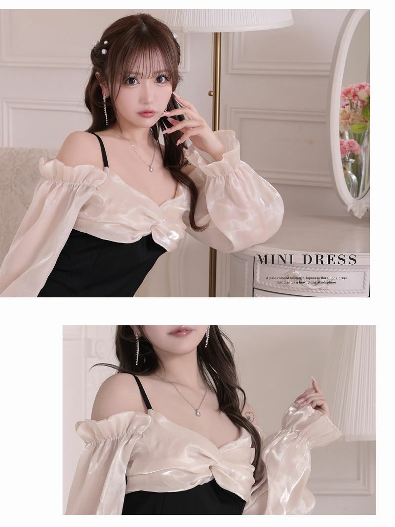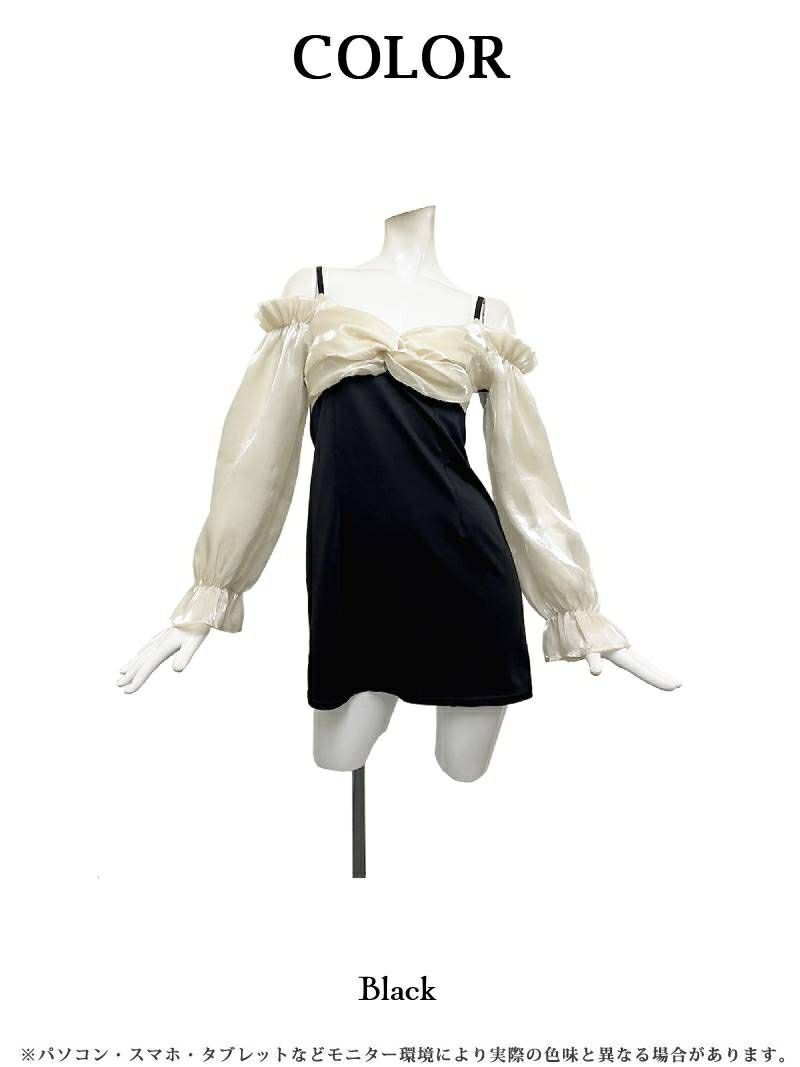 リボン風胸盛りオフショルミニドレス りせり 着用 キャバドレス【RyuyuChick】