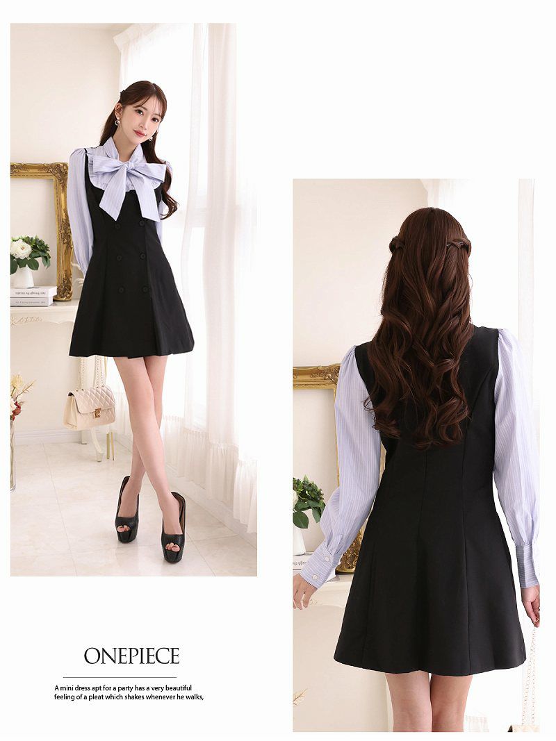 7. スーパーSALE¥6980→¥4332! レイヤード風韓国風シャツワンピース【Ryuyu】(S/M/L)(ブラック) ptpl