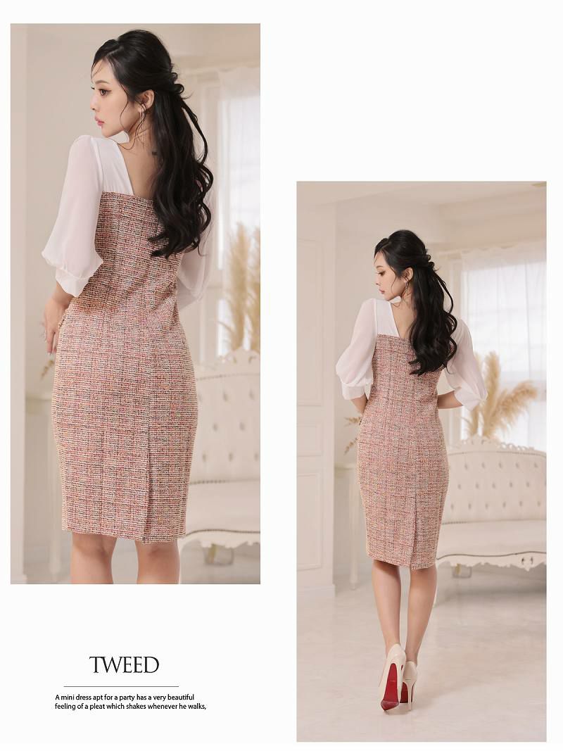 5. 先行予約割¥7980→¥7581!※一部予約販売※ラメツイードシフォン袖付き韓国ワンピース KANO 着用 大人ワンピース【DAYS PIECE】(S/M/L/XL(2L))(ピンク)