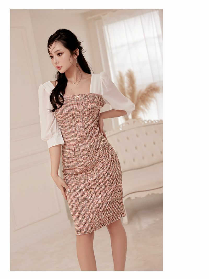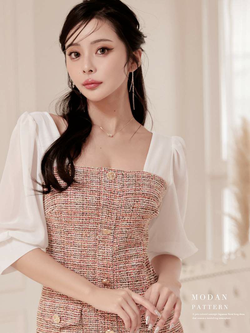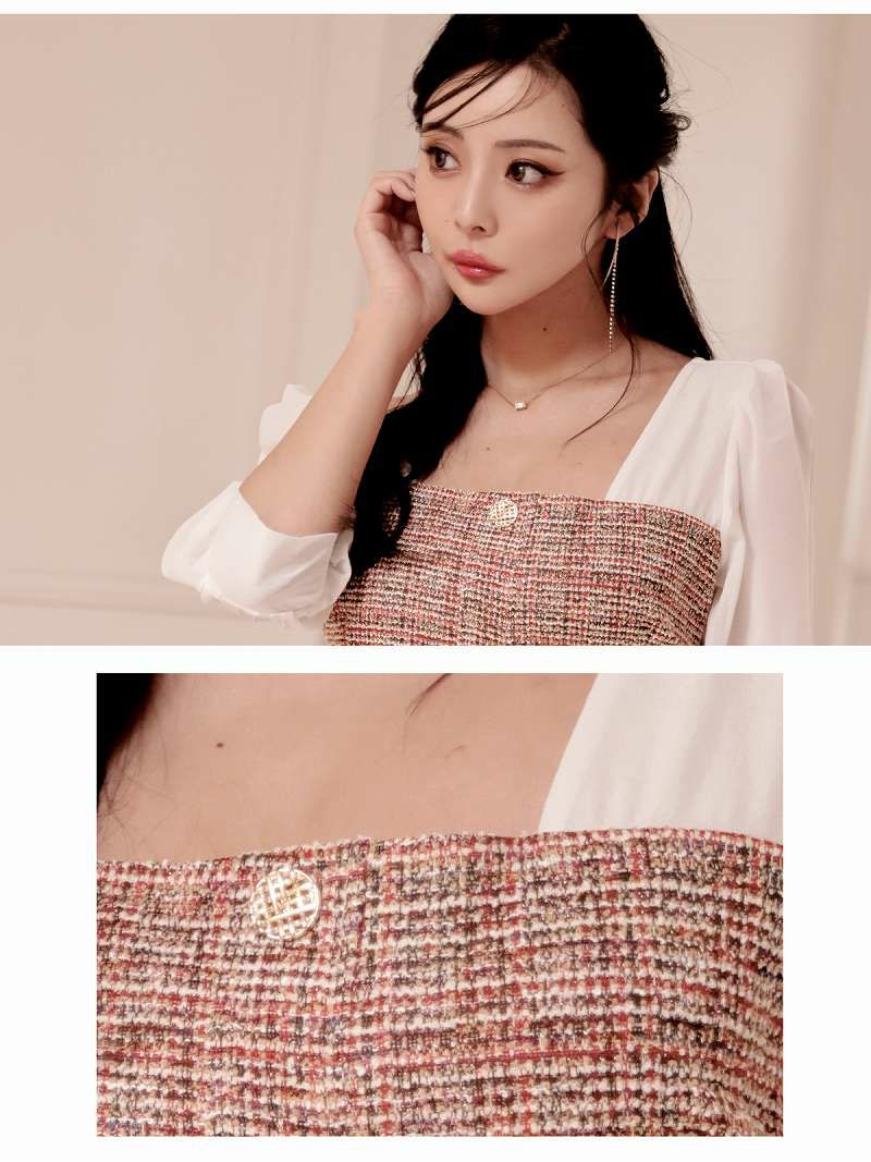 ラメツイードシフォン袖付き韓国ワンピース KANO 着用 大人ワンピース【DAYS PIECE】