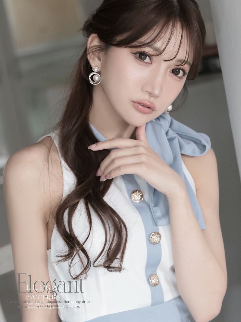 首周りのリボンポイントが可愛い上品さUP!華奢見え叶うキャバドレス。