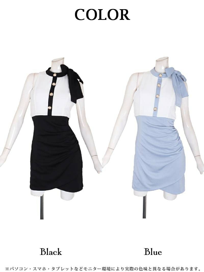6. スーパーSALE¥6480→¥5333! アメスリ華奢見せバイカラーミニキャバドレス【Ryuyu】(S/M/L)(ブラック/ブルー)