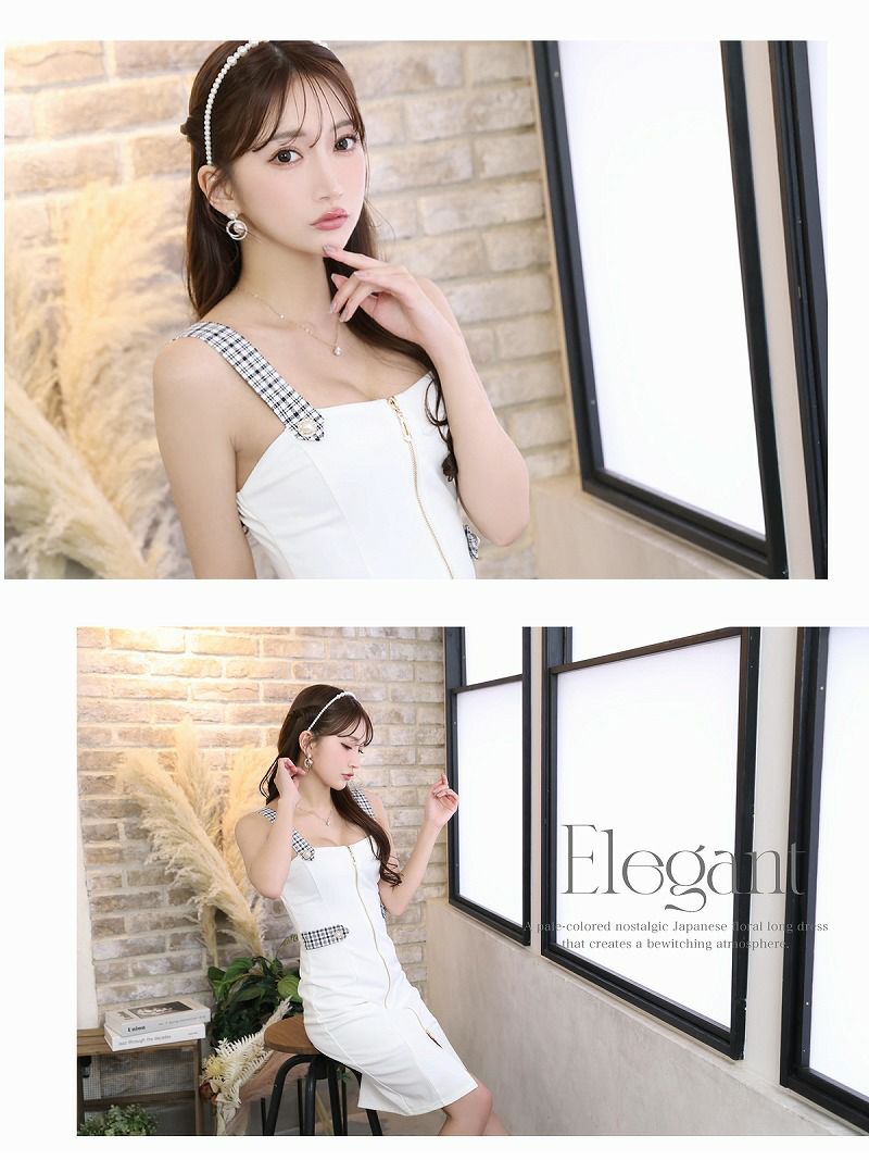 4. チェックパイピング膝丈ドーリージップキャバドレス【Ryuyu】(S/M/L)(ブラック/ホワイト)