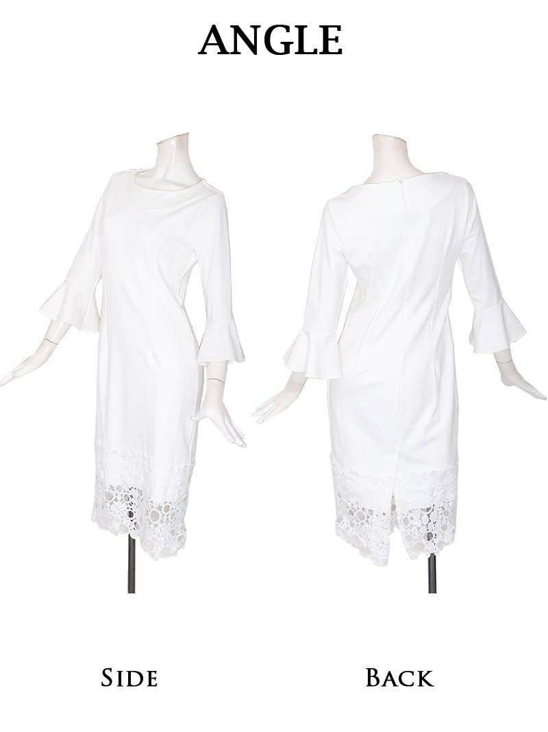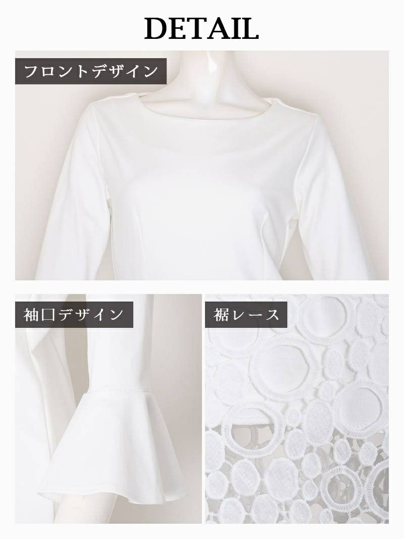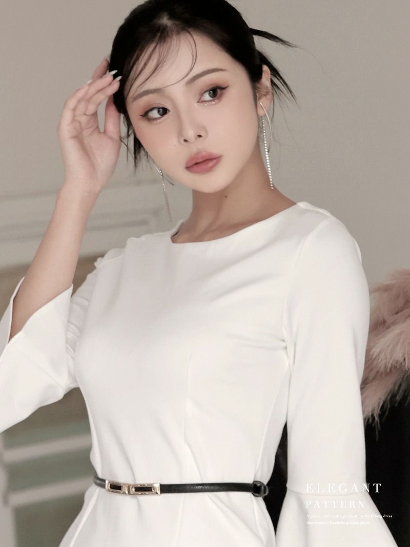 フレア袖が大人可愛い、袖付きの白ワンピースは二の腕が上品に隠せるキャバワンピースになっています。