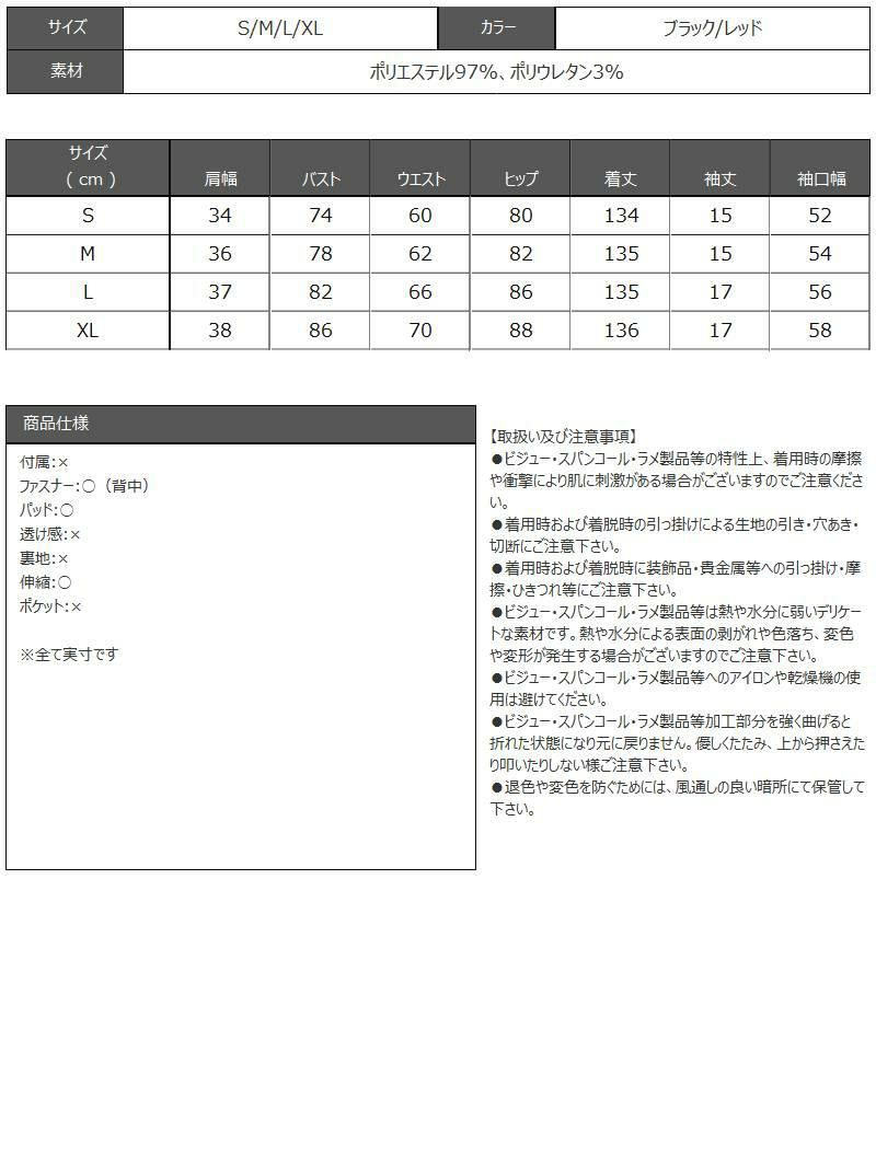 4. 谷間見せ袖つきストレッチロングドレス【Ryuyu】(S/M/L/XL(2L))(ブラック/レッド)