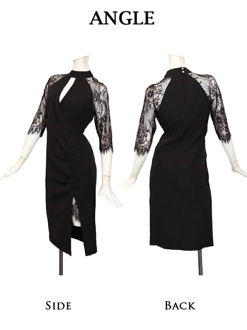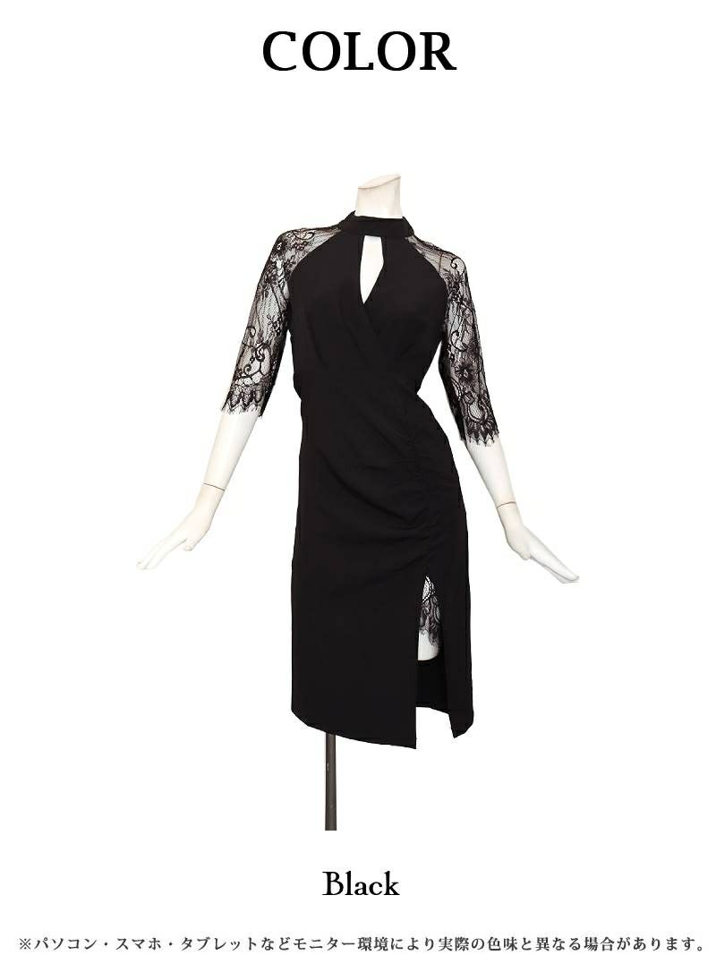 4. 先行予約割¥8980→¥8530!※一部予約販売※スリットレース×ギャザー袖付きアメスリ風韓国ドレス KANO 着用 キャバワンピース【DAYS PIECE】(S/M/L/XL(2L))(ブラック)