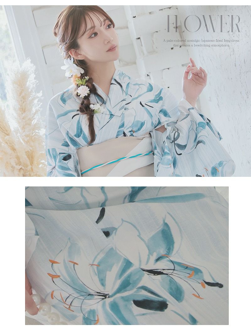清涼感と色気をまとう、大人かわいい夏浴衣。 浴衣 青×白 百合の大判古典柄浴衣2点セット【Ryuyu】(フリーサイズ)(ブルー)